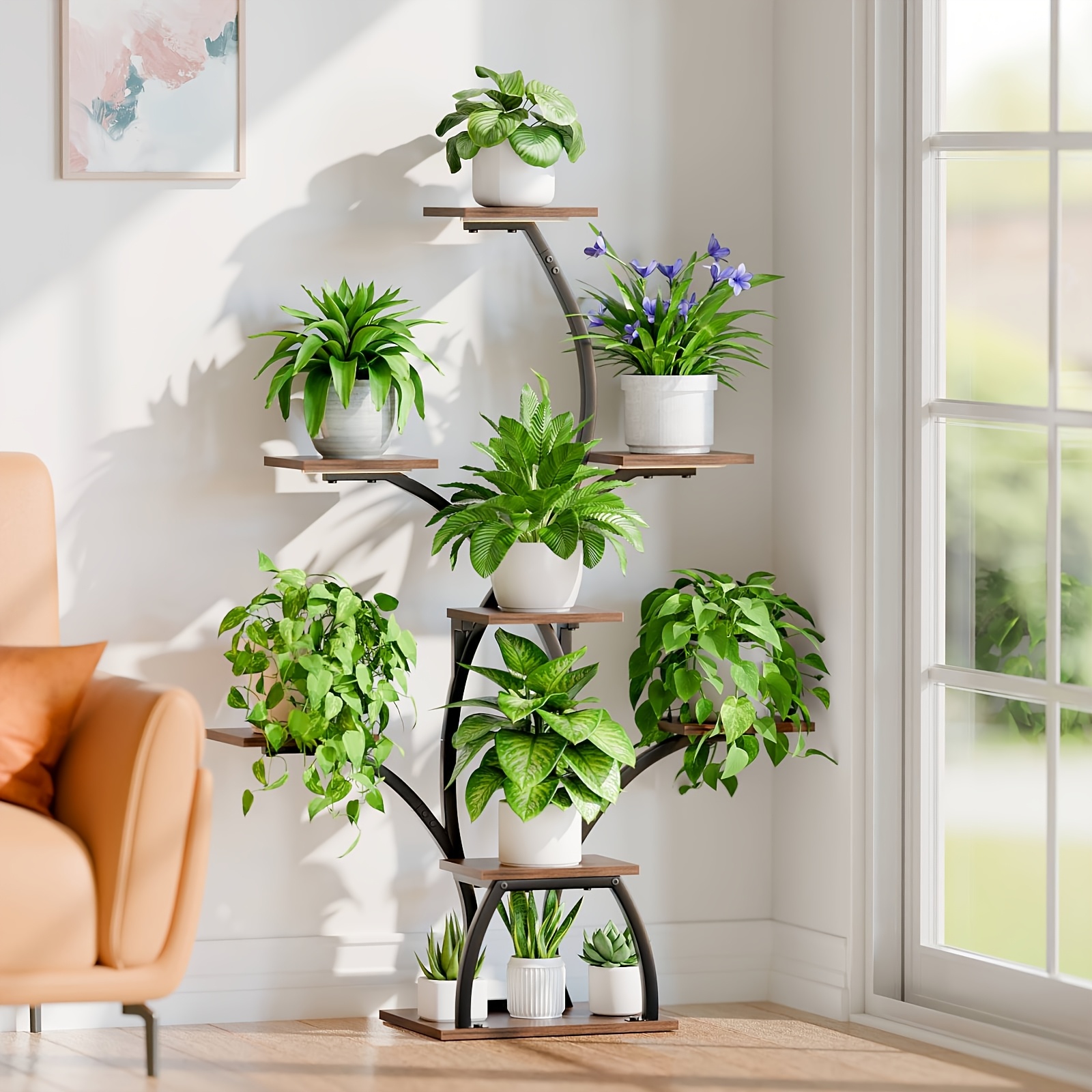 Transformez votre espace en un paradis botanique avec le support pour plantes d'intérieur MJOMKN avec lampes de culture, vous obtenez plus qu'une simple étagère : c'est une maison compacte et élégante pour vos plantes, conçue pour apporter beauté naturelle et fonctionnalité à n'importe quel espace. Il se fond parfaitement dans n'importe quel décor et est idéal pour présenter une collection variée de fleurs et de plantes d'intérieur de petite ou moyenne taille Porte Plantes Avec Lampe De Croissance Support Pour Plantes D'intérieur Avec Lampes De Croissance – Étagère D'angle à 6 Niveaux Pour Plantes D'intérieur, 91,4 Cm Pour Plantes D'intérieur, Support De Fleurs Incurvé En Matel Pour Terrasse Lampe Pour Porte Plante Les tuyaux en fer disposent d'un revêtement résistant à la rouille, tandis que les étagères sont traitées avec une finition résistante à l'eau, vous permettant d'arroser vos plantes sans vous soucier des dommages. Design à 6 niveaux et peu encombrant. Support pour plantes avec lampes de croissance : ce support de plantes au design unique dispose de lampes de culture à spectre complet à 3 têtes, qui incluent une minuterie et sont réglables, ce qui facilite la personnalisation de l'éclairage pour soutenir une croissance saine. Améliorez votre verdure intérieure avec style et fonctionnalité Le support pour plantes d'intérieur MJOMKN avec lampes de croissance offre une solution idéale pour les amateurs de plantes et les décorateurs d'intérieur. Boostez votre espace sans effort et montrez vos plantes en un clin d'œil. Il est également idéal pour afficher des photos, des livres ou des travaux manuels, créant un espace multifonctionnel qui plait aux amateurs de plantes qui veulent une touche élégante et fonctionnelle dans leur expérience de jardinage intérieur. Achetez maintenant chez VEVOR. C'est le mélange ultime de commodité et de fonctionnalité Couleur. noir · Matériau. Bois Fer Métal · Marque. JUSTOGO · Poids de l'article. 5,05 Kilogrammes · Dimensions de l'article L x l x H 51,3 x 30,5 x 91,4... Décoration d'intérieur et utilisation polyvalente : mélangeant des éléments de design droits et incurvés, ce support ne peut pas seulement contenir des plantes, il améliore votre décoration d'intérieur. Ce support dispose de 3 lampes de culture réglables à spectre complet avec une minuterie, parfaites pour soutenir une croissance saine sans avoir besoin de la lumière naturelle du soleil. Support à plantes à 6 niveaux pour économiser de l'espace : cette jolie étagère pour plantes offre six niveaux d'étagères pour placer les plantes tout en occupant un minimum d'espace, ce qui s'adapte parfaitement à n'importe quel coin ou mur vierge avec un espace limité. Parfaitement adapté pour les petits coins ou les murs vierges, son design permet d'exposer facilement une variété de plantes, des petites fleurs aux pots d'intérieur moyens, ajoutant une vie dynamique à n'importe quelle pièce. Support pour plante d'intérieur 40 avec lumières de