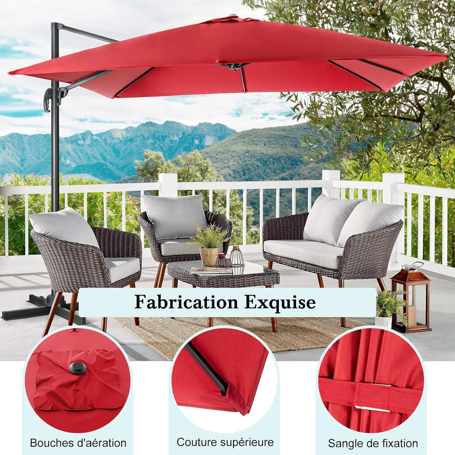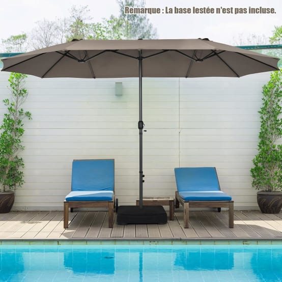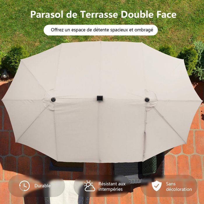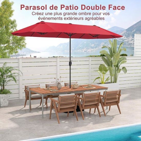 Utilisation Sûre et Stable : Ce grand parasol de jardin est doté d'un poteau métallique robuste et de 12 nervures résilientes pour un soutien inébranlable Description du produit Notre parasol de terrasse de 4,6 m offre une ombre généreuse pour votre jardin, piscine ou terrasse de camping-car. Élégant et pratique, ce parasol d'extérieur pour terrasse est parfait pour tout espace extérieur. Parasol Rectangulaire Double Face 2.9 m Kaki Grand Format Avec Parasol Double Pente Prix Parasol De Terrasse De 4,6 M / 4,6 M Pour Extérieur / Parasol Double Parasol Double Pente Extérieur Parasol de patio spacieux de 4,6 m pour un maximum d'ombre : ce parasol de terrasse de 4,6 m offre une large couverture, idéal pour votre jardin, bord de piscine ou terrasse de camping-car. Auvent durable et résistant aux UV : construit avec un cadre en aluminium robuste et un auvent en tissu résistant aux UV, ce grand parasol d'extérieur vous protège des rayons nocifs du soleil tout en assurant une utilisation durable en extérieur. En tant que grand parasol de terrasse, il offre une excellente ombre pour les réunions en plein air et la détente. Toujours assembler et démonter le parapluie soigneusement pour éviter les blessures. Fixez-le toujours à une base stable pour éviter le basculement, en particulier dans des conditions venteuses. FQMYLTYN 4.6m Parasol D'extérieur Double Face avec Base, Parapluie pour Table de Jardin, Manivelle et UV 50 , Facile à Démonter et à Transporter, Parasol... Construit avec un cadre en aluminium robuste et un auvent résistant aux UV, ce grand parasol de terrasse offre une protection durable contre le soleil.
