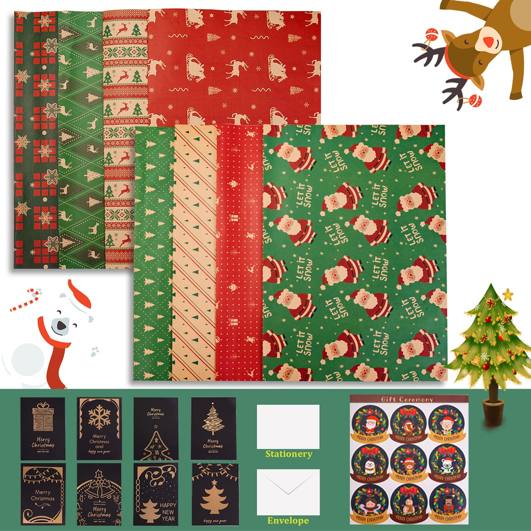Contenu et taille : le lot de papier cadeau comprend 8 feuilles de papier cadeau kraft, livré avec 8 cartes de vœux, 9 autocollants et 8 enveloppes. Design sur le thème de Noël : ce papier kraft jaune de Noël est plein d'atmosphère de Noël forte, la couleur principale est rouge et vert, imprimé avec « Let It Snow », arbre de Noël, Père Noël, rennes, flocons de neige, cloches, cadeaux et autres motifs Qualité fiable : le papier cadeau de Noël est fabriqué en papier kraft de haute qualité 100 g/m² avec une surface lisse, sûr et durable, réutilisable, vert et pas facile à déchirer, vous pouvez emballer des cadeaux rapidement et efficacement sans vous soucier des déchirures ou des déchirures inutiles Les cadeaux commencent par leur emballage ! Cette année, fais sensation dès le premier regard avec notre collection de papiers cadeau de Noël signée . Découvre nos rouleaux de papier cadeau aux motifs amusants et colorés, parfaits pour donner vie à tes paquets Toptime Lot de 6 feuilles de papier cadeau de Noël métallisé, noir et doré, avec étiquettes autocollantes, nain, Père Noël, renne, papier cadeau de Noël pour... Rouleau Papier Cadeau TOPTIME 8 Feuilles De Papier Cadeau De Noël Avec 8 Cartes De Noël Carte Noël Toptime Lot de 8 feuilles de papier cadeau de Noël rouge et