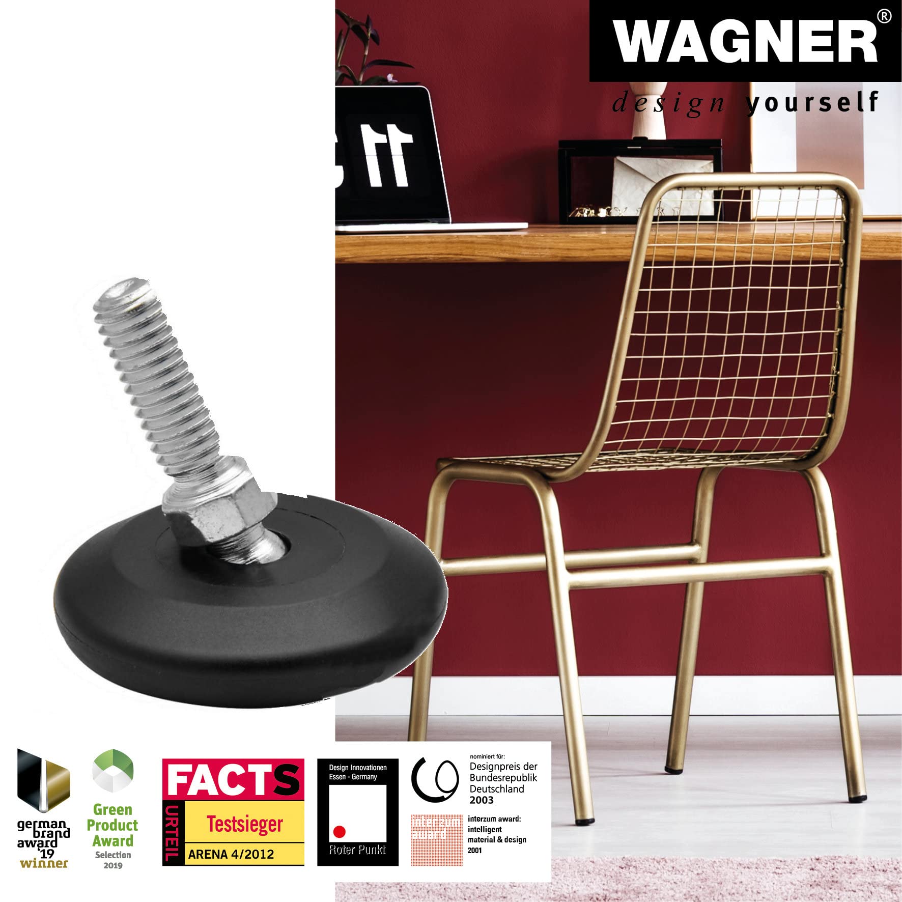 Veuillez trouver d'autres solutions pour les chaises et tables en bois ou en métal, chaise cantilever, joints de chaise, pour les pieds de canapé et pour pieds de table de WAGNER ainsi que de nombreux autres produits de marque dans la boutique WAGNER design yourself (veuillez cliquer sur le lien au-dessus du titre du produit). Pieds Réglables Professionnel WAGNER QuickClick® Pieds Réglables 37 Mm - Lot De 4 - Avec Pied De Chaise Matériel L'insert du patin HYPER est fait d'un matériau thermoplastique extrêmement glissant, avec les meilleures propriétés de glissement. Dimensions de l'article : 30 mm conique, hauteur 20 mm, filetage M8 x 25 mm, patins souples QuickClick 25 mm inclus; Pour la construction individuelle de... Les meubles et les sols sont ainsi protégés - de façon permanente ! Système breveté QuickClick : Pied réglable avec insert coulissant interchangeable Ensemble complet pour un meuble Qualité 100% fabricant - Fabriqué en Allemagne Avec insert coulissant HYPER en plastique spécial très glissant pour toutes les surfaces de sol robustes ou rugueuses Contenu de la livraison : 4 x pied réglable ø 37 mm avec rotule ; filetage M8 x 25 ; 4 x insert HYPER ø 30 mm La solution intelligente : le pied réglable du système QuickClick - le seul pied de meuble réglable en hauteur avec un insert coulissant interchangeable ! Celui-ci est simplement encliqueté et peut être remplacé par un patin de rechange HYPER en quelques secondes lorsqu'il est usé. Ce qui est astucieux : le pied réglable QuickClick est fixé une fois au meuble et sert de réceptacle à l'insert glissant HYPER qui protège le sol. La solution s'appelle : WAGNER QuickClick. C'est pourquoi il existe un insert de glissement adapté à chaque revêtement de sol : vous choisissez les inserts QuickClick en feutre de laine doux et duveteux pour tous les sols très sensibles ; les inserts en feutre naturel est très résistant à l'abrasion ; pour toutes les surfaces souples, choisissez les inserts en plastique spécial extrêmement résistant au glissement. Il est à encliqueter dans une pièce de base correspondante en plastique de haute qualité. 15418899 Lot De 4 Pieds De Meuble Avec Système Quickclick 20 Mm De... Parce que QuickClick est le seul système de glissement et d'arrêt avec des inserts interchangeables. Equipez votre maison de patins de qualité supérieure QuickClick. Search faster with PicClick Visual Search. PROPRE ET INTELLIGENT : Vous en avez assez de coller ou de clouer des patins de meubles tombés ou usés sur vos meubles, encore et encore ? Laissez tomber. Remplacez l'insert QuickClick lorsque le sol est changé ou usé - sans outils spéciaux. Cette idée est brevetée ; et a été récompensée par de nombreux prix de design. EJ.life Coussinets de pied réglables à filetage M8 2 pièces meubles