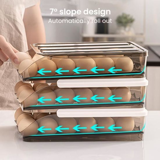 L'organisateur de tiroir de réfrigérateur est parfait pour organiser les œufs dans le réfrigérateur. Tiroir à œufs extractible : il s'agit de 1 tiroir à œufs pour réfrigérateur, peut contenir 18 à 21 œufs. 3 : la partie supérieure est amovible et réglable, maximise vraiment le stockage du réfrigérateur. Les tiroirs coulissent sans enlever tout le support. Tous les problèmes seront résolus dans les 24 heures. Veuillez vous assurer que vos étagères de réfrigérateur ont une profondeur de 30 cm à 41,9 cm, et l'épaisseur de l'étagère du réfrigérateur doit être inférieure à 1,5 cm. Support de tiroir à œufs pour réfrigérateur (lot de 1) ; Egg Holder. €43.56€43.56. Usually dispatched within 5 to 6 days ; Livraison GRATUITE 27 décembre - 2... Pourquoi choisir notre boîte de rangement pour réfrigérateur ? 1 : matériaux de qualité alimentaire robustes et durables, forte capacité de charge, pas de déformation. Ou l'article ne fonctionnera pas dans votre réfrigérateur. Matériau de qualité supérieure : l'organisateur d'œufs de réfrigérateur est fabriqué en plastique PET de qualité alimentaire, sans BPA, non toxique, durable, bords lisses et sûr à utiliser. Boîte à œufs Empilable Frigo Boîte De Rangement Œufs Avec Tiroir Roulement automatique : la courbe de roulement automatique est facile à prendre, après avoir retiré un œuf à l'avant, l'œuf à l'arrière s'enroule automatiquement. Rangement Oeuf Plateau œufs Réfrigérateur Range-œufs Coulissant Pour Frigo Support Oeuf Le design en matériau transparent garde les aliments visibles et faciles à localiser. La longueur du rail coulissant peut être étendue de 30 cm à 41,9 cm. Veuillez noter la taille si elle convient : avant l'achat, veuillez vous assurer que vos étagères de réfrigérateur ne sont pas inclinées ou incurvées vers le bas. Pliable pour le rangement, gardant le réfrigérateur bien rangé et économisant de l'espace. Conception : le support de stockage des œufs adopte une conception de plateau de type tiroir, qui peut minimiser le contact avec l'air extérieur et maintenir la fraîcheur des œufs 2 : Le tiroir a une poignée pour un accès facile.