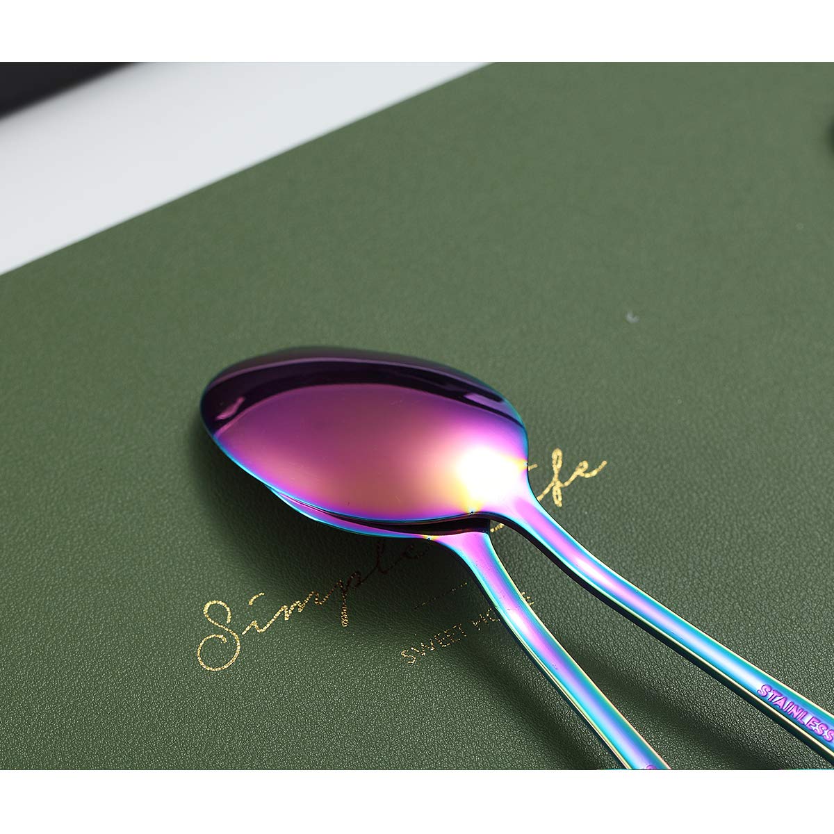 Le total comprend 4 cuillères de haute qualité et magnifiques, assez pour un usage quotidien. En acier inoxydable de qualité, sans BPA ni plomb, elles sont résistantes à la rouille et passent au lave-vaisselle. Le lot de 6 est parfait pour la maison, les... BISDARUN Cuillere a Cafe Expresso Arc En Ciel Inox 18/10 Petite Cuillère à Dessert 13,5 cm/5,3 Inch Cuillères à thé Lot de 8 Cuillère à Moka Bon pour le thé, le café, la crème glacée, l’apéritif, le dessert, etc. Petite Cuillère à Café Berglander Lot De 6 Cuillères à Café Arc-en-ciel En Acier Cuillère à Café En Plastique Look unique : cet ensemble d'ustensiles de cuisine fantaisie dispose d'une surface satinée, chic et élégant, ajoutez une touche élégante et luxueuse à votre table, démarquez-vous de ces couverts communs, évaluez vos repas quotidiens en une expérience culinaire raffinée Matériau : nos cuillères arc-en-ciel sont fabriquées en acier inoxydable de haute qualité, réutilisables. Taille : la cuillère de pelle mesure environ 15,5 cm x 3,4 cm (L x l).
