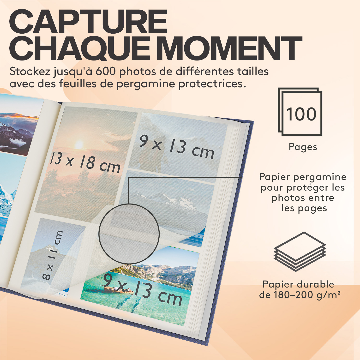 Taille et capacité : la taille de l'album est de 33 x 30,5 x 5,1 cm (L x l x H). Pour un mariage, un voyage en famille, un anniversaire, la naissance d'un bébé, la fête des pères, la fête des mères, etc. SAL Albums de Scrapbook à faire soi-même Scrapbooking, 40 Pages 0.8x3 Album photo à personnaliser soi-même - 100 pages noires - Format A4-28 x 20 cm - Album photo - Kit de scrapbooking pour bébé famille - Saint-Valentin - Avec stylos, autocollants, coins photo 3,7 (30) 1789€ Livraison GRATUITE sam. 20 déc. pour votre première commande Cadeau parfait : nos albums photos sont un excellent cadeau pour stocker de nombreux souvenirs précieux en diverses occasions. Album De Scrapbooking à Décorer écriture Pour Photos De 7,6 X 12,7 Cm, 12,7 X 17,8 Cm, 15,2 X Album Photo La page intérieure mesure 12,6 x 27,9 cm (L x l). Pour plusieurs tailles de photos : l'album peut contenir des photos de 7,6 x 12,7 cm, 10,2 x 15,2 cm, 12,7 x 17,8 cm, 15,2 x 20,3 cm, 20,3 x 25,4 cm, ou stocker des tickets, des certificats et des souvenirs de nombreuses formes et tailles. Enveloppée dans du lin : la couverture rigide enveloppée dans du lin est simple et élégante, ce qui est durable et robuste pour durer des années. Taille et capacité : la taille de l'album est de 33 x 30,5 x 5,1 cm, la longueur de la page intérieure est de 12,6 x 27,9 cm, un total de 100 pages (50 feuilles...