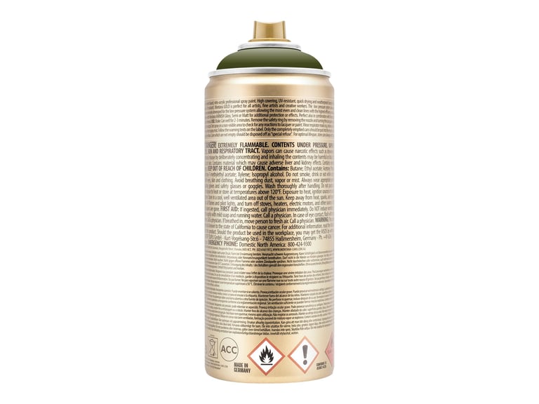 Très bonne opacité due à la haute teneur en pigments de la peinture. RAL 6006 Olive Gris Grey Olive Mat Acrylique Bombe Aérosol 2C Activez la bombe aérosol bi-composant : Appuyez sur la valve située sous la bombe avec le bouton en plastique du couvercle. RAL 6006 Olive gris / Grey olive mat acrylique bombe aérosol 2C 400ml séchage rapide Marque de voiture: RAL Code de peinture: 6006 Noms de peinture: Olive gris, Grey olive, Grauoliv, Oliva grigiastro, Oliva grisáceo, Grijs olijfgroen Taux de brillance: mat Utilisation La surface doit être dépoussiérée, sèche et exempte de graisse - nettoyez-la avec un nettoyant silicone si nécessaire. Effectuez 3 passes en laissant 20 minutes entre chaque couche. Le temps de séchage est de 30 minutes hors poussière, non collant après 2 heures, et séchage complet en 8 heures. Il est crucial de respecter un temps d'attente suffisant entre chaque couche pour permettre aux solvants de s'évaporer Peinture monocouche bi-composant - séchage rapide, excellente adhérence, résistant à l'essence et aux produits chimiques. Buse de la tête de pulvérisation réglable RAL 9016 BLANC signalisation Traffic white mat acrylique bombe aérosol... Tournez la bombe de conserve à l'envers. Agitez bien la bombe aérosol au moins 2 minutes avant utilisation. RAL 7006 Gris beige / Beige grey Stylo de retouche - tous les taux de (La boule de mélange doit être audible., ) Laissez la peinture sécher complètement après la dernière couche. Ensuite, secouez à nouveau la bombe vigoureusement pendant 2 minutes. Idéal pour les travaux de réparation sur les pièces de la carrosserie, en plastique ou dans le domaine des loisirs, de l'artisanat et du modélisme Peinture de qualité OEM / Original Equipment Manufacturer avec une précision des couleurs extrêmement élevée.