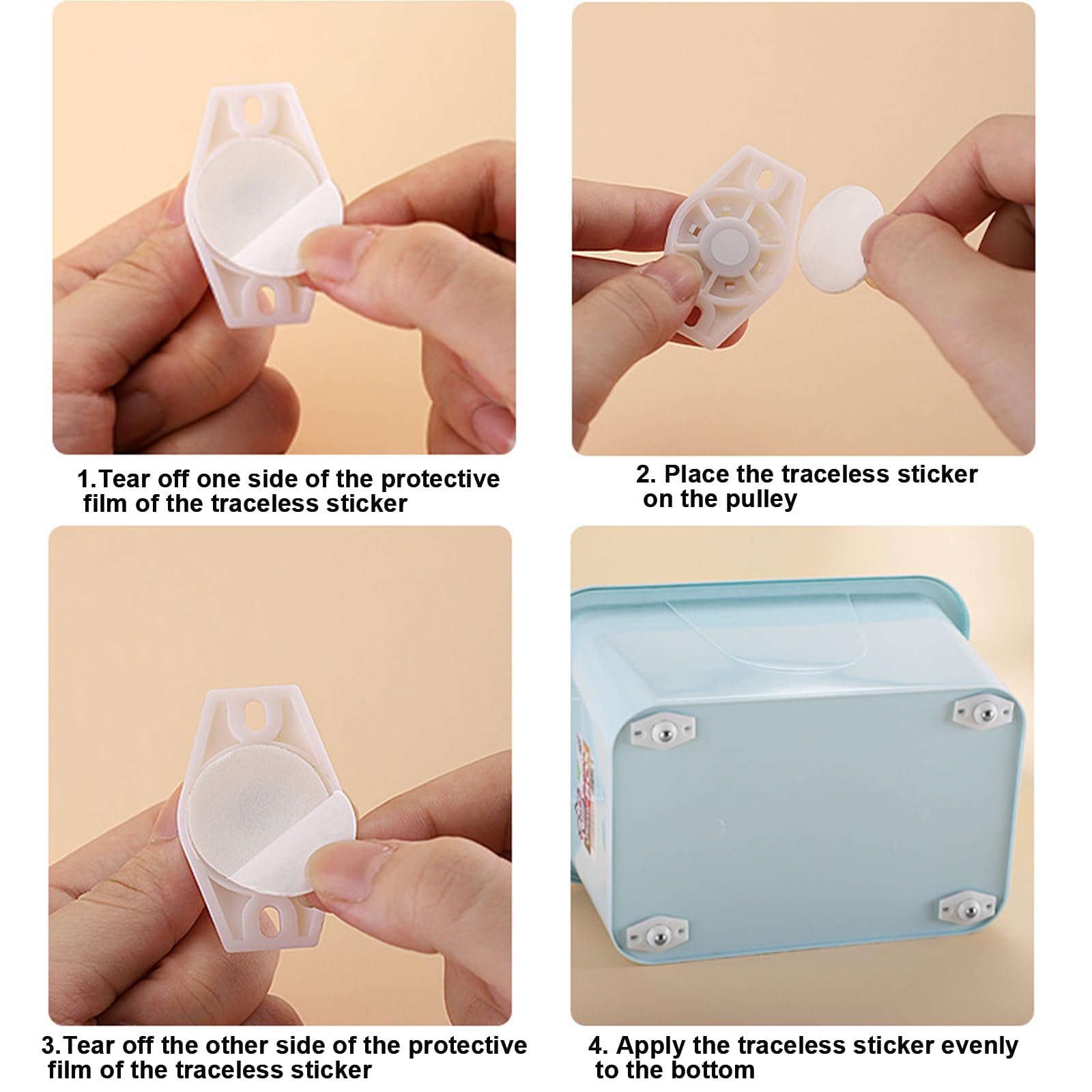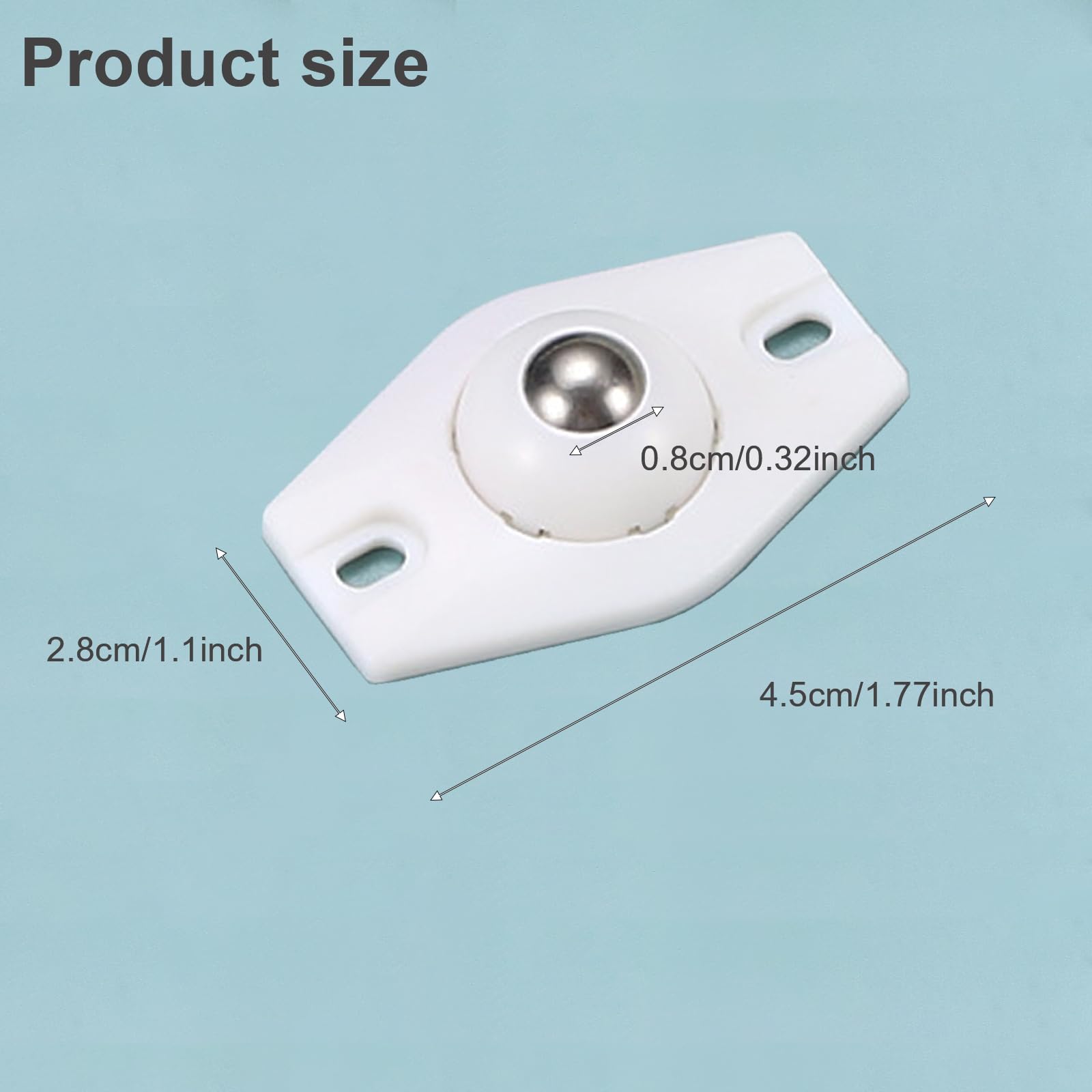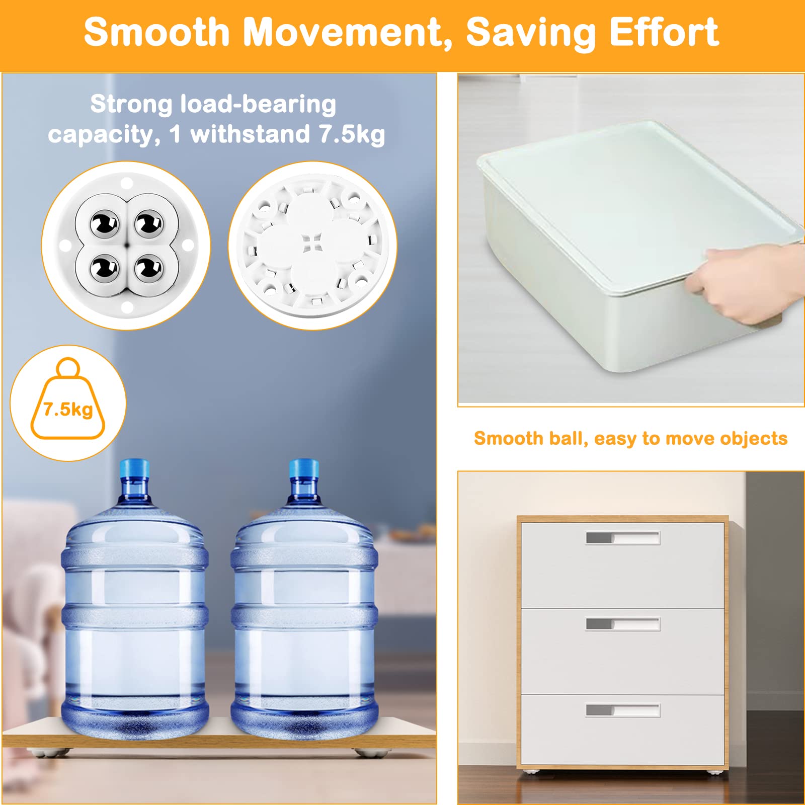 Bonne capacité de charge : petite taille unique pour meubles capacité de charge maximale de 20 kg, les roulettes pivotantes peuvent pivoter à 360 degrés lors de l'utilisation, ce qui réduit l'intensité du travail, la fatigue des travailleurs. Très peu d'espace est nécessaire pour installer les roulettes, répondre efficacement à vos différents besoins. Convient pour les petits meubles, les boîtes de rangement, les conteneurs, les étagères, les boîtes à chaussures, les boîtes de rangement, les conteneurs, les étagères, les boîtes à chaussures, etc. Design pratique : les perles roulantes dans la partie inférieure peuvent se déplacer dans une direction à 360 °, rotation libre, glissement illimité, pratique... Remarque : Les mesures étant prises à la main, les tailles indiquées peuvent varier de 1 à 2 mm Spécification : Matériau : ABS + acier inoxydable Couleur : blanc + argent Capacité : 10-20 kg Dimensions : 4,4 x 1,5 cm Quantité : 24 pièces. Lot de 24 roulettes pour meubles : vous recevrez 24 roulettes plates pour meubles lourdes, dimensions : 4,4 x 1,5 cm. Les petites roulettes à billes peuvent être utilisées pour déplacer de petites boîtes de stockage, les petites roulettes Mini roulettes sans rayer ou poncer le sol, assurent un roulement silencieux et doux. Roues Directionnelles 360 Roulettes Meubles Cyiecweu 12pcs - Nylon 4 Trous Adhésif 360° 4.8cm Roulettes Adhésives Meubles Les roulettes à billes pour meubles ne s'usent pas aussi rapidement et résistent au temps sans problème. Facile à installer, vous pouvez ajuster le nombre de roulettes de meubles installées à plat selon la charge, l'utilisation de roulettes flexibles. Petites roulettes pour meubles faciles à installer. Vous pouvez également ajouter d'autres roulettes à billes pour meubles si nécessaire. Roulette Electromenager Lot De 20 Roulettes Sphériques Autocollantes à 360 ° - Pour Petite Roulette Lors du déplacement, il n'y a pas de secousses, ce qui est sûr et fiable Facile à installer : les roulettes sphériques pour meubles peuvent être installées sans outils. Large utilisation : les roulettes à billes pour meubles sont petites, mais la combinaison de 4 roulettes pour meubles peut être lourde. Pas de perçage nécessaire et n'endommage pas l'objet. Si vous utilisez plus de quatre roulettes à billes pour meubles, vous pouvez supporter des poids impressionnants allant jusqu'à 40 à 80 kg. les petits roulettes de meubles, mais sont également souvent utilisées pour le montage sur des récipients de rangement, des organisateurs, des boîtes à chaussures, des boîtes de bricolage, des paniers à linge, des récipients, des pots de fleurs ou d'autres meubles. Remarque : il est recommandé d'attendre 24 heures après avoir inséré l'installation avant de commencer à l'utiliser pour assurer une installation ferme. Une seule roue de meuble peut supporter jusqu'à 10 kg. Il suffit de retirer l'arrière et de coller les roulettes de meubles au bas du meuble.