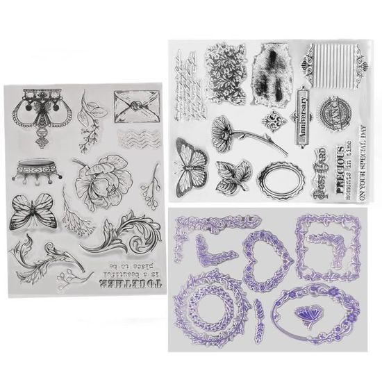 INFUNLY Lot De 3 Tampons Transparents En Forme De Papillon Pour Leurs motifs sont caractérisés par un papillon, chaque papillon est inéquable, et 3 types d'outils différents peuvent répondre à vos besoins de bricolage. Lorsque vous utilisez un modèle de dessin mural, vous devez fixer les quatre coins, puis dessiner. Lntyq Lot de 3 tampons de rechange lavables et réutilisables pour Utilisation polyvalente : cet ensemble de tampons et matrices de découpe papillon peut être utilisé pour décorer vos albums photo, cartes de vacances, albums... Le gabarit de peinture murale est fabriqué en matériau animal de compagnie et peut être réutilisé après nettoyage après utilisation. Ils peuvent également vous aider à exercer vos compétences manuelles et à profiter du plaisir du bricolage pendant votre temps libre. Largement utilisé : vous pouvez utiliser ces matrices de découpe et sceaux transparents pour créer des invitations, des cartes de vœux, des albums photo, des travaux manuels en papier, des décorations de gâteaux, des albums, et plus encore. Durable : cette matrice de découpe en métal et joint en silicone sont fabriqués en acier au carbone et en silicone, robustes et durables, et peuvent être réutilisés. Après utilisation, vous pouvez nettoyer le gabarit pour la prochaine utilisation. <br/<br/Ces tampons s’utiliseront plus facilement grâce à un outil pour pochoirs et tampons, vendu séparément. Utilisation : retirez le joint transparent, collez-le sur un bloc acrylique (non inclus), appliquez uniformément l'encre (non incluse), placez-le sur la surface, puis estampez le motif avec force.
