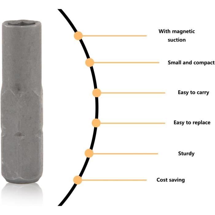Il vous permet de travailler avec divers embouts tout en garantissant une compatibilité avec des manches de 6,35 mm. Son design polyvalent le rend indispensable dans tout kit d'outils, que ce soit pour un usage domestique ou professionnel. Que vous soyez un bricoleur amateur ou un professionnel, ces tournevis vous permettront de réaliser vos tâches avec aisance. Avec leur qualité de fabrication et leur adaptabilité, ces outils deviendront rapidement vos alliés incontournables pour toutes vos réparations. Notre équipe est là pour vous aider et s'assurer de votre satisfaction. De plus, il est compatible avec des manches de 6,35 mm, ce qui élargit considérablement vos possibilités d'utilisation. Convertisseur polyvalent : ce convertisseur hexagonal convertit les connecteurs de 1/4 ou 6,35 mm en 4 mm, ce qui rend plus facile pour les utilisateurs d... Découvrez notre ensemble de 6 tournevis de précision, un outil essentiel pour toute personne soucieuse d'effectuer des réparations et de l'entretien avec efficacité. Ce set de tournevis est parfait pour une variété d'applications, qu'il s'agisse de petits travaux d'entretien à la maison, de réparations de machines ou de l'entretien de véhicules. Ils sont idéaux pour les utilisateurs en déplacement, permettant des réparations rapides et efficaces à tout moment et en tout lieu. Noix de serrage de précision bi-matière | Douilles 6 pans | Coffret 6 pcs ADAPTABILITÉ: tournevis hexagonaux 1/4, Si vous possédez un tournevis avec une tête de lot de 1/4 et que vous souhaitez utiliser des embouts de 4 mm, cet adaptateur est. Tournevis Hexagonal Extérieur Kit De Tournevis De Précision 37 Pièces, Micro-embouts En Acier S2 Durables, Avec Poignée De Pilote Magnétique De Conception à Faible Gravité, Pour La Réparation électronique Tournevis Etoile 6 Branches COMPACITÉ ET PRATICITÉ : Douilles tournevis hexagonales 6., 35 mm, Ce set comprend deux tournevis adaptateurs légers et compacts, conçus pour être facilement transportables et rangés. L'embout usiné avec précision assure un maintien ferme et sécurisé, risque de glissement pendant l'utilisation. Fabriqués en acier à outils modifié, ces tournevis présentent une durabilité impressionnante et résistent à l'usure, garantissant ainsi une longue durée de vie. Jeu de douilles à embout hexagonal d'entraînement de 6 pièces, outil à tête de douille d'entraînement de 1/4 pouces, douille d'embout de tournevis pour... Chaque tournevis est conçu pour être léger et compact, facilitant ainsi leur transport et leur rangement.