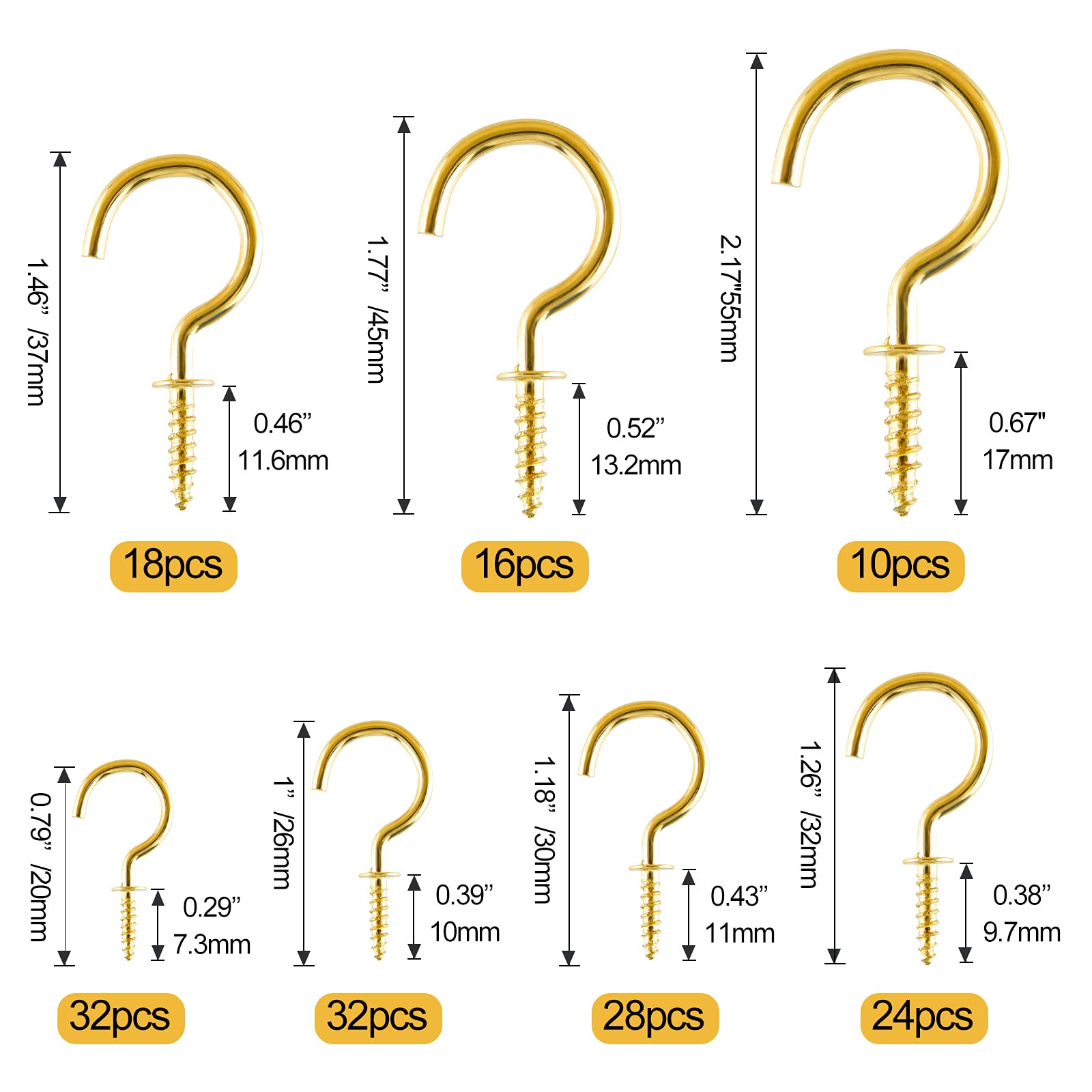 Cimeton Lot de 205 crochets à visser pour tasses, 6 tailles de crochets de plafond, 110 crochets de suspension en bronze Habituellement parfait pour accrocher des plantes, des clés, des cadres photo, etc. Si vous avez des questions, n'hésitez pas à nous contacter pour obtenir de l'aide WUJIAQIU 225 Pcs Crochets à Visser, Crochets de Plafond, Crochets [Nombreuses applications] : ces crochets de tasse peuvent être largement utilisés dans de nombreux endroits, tels que le jardin, la maison. Crochet Plafond Lot De 7 Crochets De Plafond, Crochets De Suspension Pivotants à 360 Accroche Plafond [Qualité supérieure] : les crochets de plafond sont fabriqués en acier durable, ils sont solides et robustes. Mais nous vous suggérons de percer un trou à l'avance pour une installation parfaite. [Facile à installer] : il est adapté à la plupart des surfaces, point de vis plus net et filetage plus propre, ce qui facilite et rapide de visser les crochets à œillets métalliques dans le bois, les cloisons sèches avec des vis autotaraudeuses. Fixez vos serviettes et torchons en toute simplicité avec ce crochet en zinc adhésif 3M™ ultra-résistant. Sa fixation sans perçage protège vos murs...