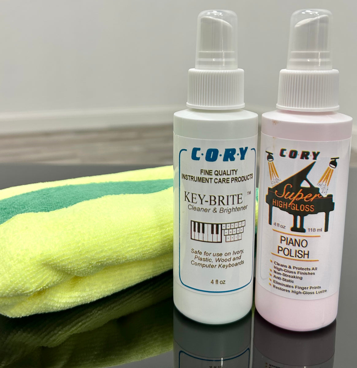 CorCorCorCorRY BUFF BRITE - Pour enlever les rayures sur toutes les surfaces laquées et en laiton. Cory-Set High-Gloss, Klavier Pflegeset - Glänzende Oberflächen... Cory-Set High-Gloss, Klavier Pflegeset - Glänzende Oberflächen Nous recommandons l'utilisation avec le vaporisateur Cory Polisher ---------------------------------------------------------------------------------------------------------------------------------------------- quel produit Cory Super High Gloss – pour toutes les surfaces laquées brillantes CORY SATIN SHEEN – pour toutes les surfaces peintes satinées CORY SATIN POLYESTER – pour toutes les surfaces en polyester satiné, CORY ALL BRITE – pour gomme-laque, pores ouverts. Cory Super High Gloss Polish Cory Super High Gloss 2oz/59 Ml Best Piano Cleaner And Polish Its special formula cleans and protects polyester, polyurethane and painted surfaces in one step. Use CORY Super High Gloss Piano Polish as many times as you like to combat fingerprints, lint and static. The special UV protection prevents the surface from fading quickly Sa formule spéciale nettoie et protège le polyester, le polyuréthane et les surfaces peintes en une seule étape. La protection UV spéciale empêche la décoloration rapide de la surface.