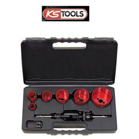 KS Tools 129., 5550 coffret de 6 scies cloches, Ø22 à 68 mm Il satisfait à toutes les exigences FIABLES ET PRATIQUES : Possédant des charnières très résistantes, ces scies vous permettront de réaliser des coupes avec précision. Scie Cloche Coffret De 8 Scies Cloches HSS Bi-métal - 229,52 Outillage Plomberie Livraison 24/48h en F Référence KS Tools : 129.5550: Sens de coupe à droite Charnière haute résistance HSS Bi-Métal Idéal pour les métaux d'une dureté jusqu'à 700 N... DES OUTILS IMPORTANTS : Ces scies cloches servent à découper des trous circulaires de grand diamètre et d'assez faible profondeur. Caractéristique technique référence KS Tools : 129.5550 Sens de coupe à droite Charnière haute résistance HSS Bi-Métal Idéal pour les métaux d'une dureté jusqu'à 700 N/mm², plâtre, bois compressé SATISFACTION GARANTIE : Nous nous engageons à vous satisfaire à 100 % et notre service client fera de son mieux pour vous offrir la meilleure expérience d'achat possible. DE QUALITÉ SUPÉRIEURE : Ce coffret de 6 scies cloches est performant. Scie cloche - KS TOOLS - 108 mm - Rouge - 1 pièce - Dimensions