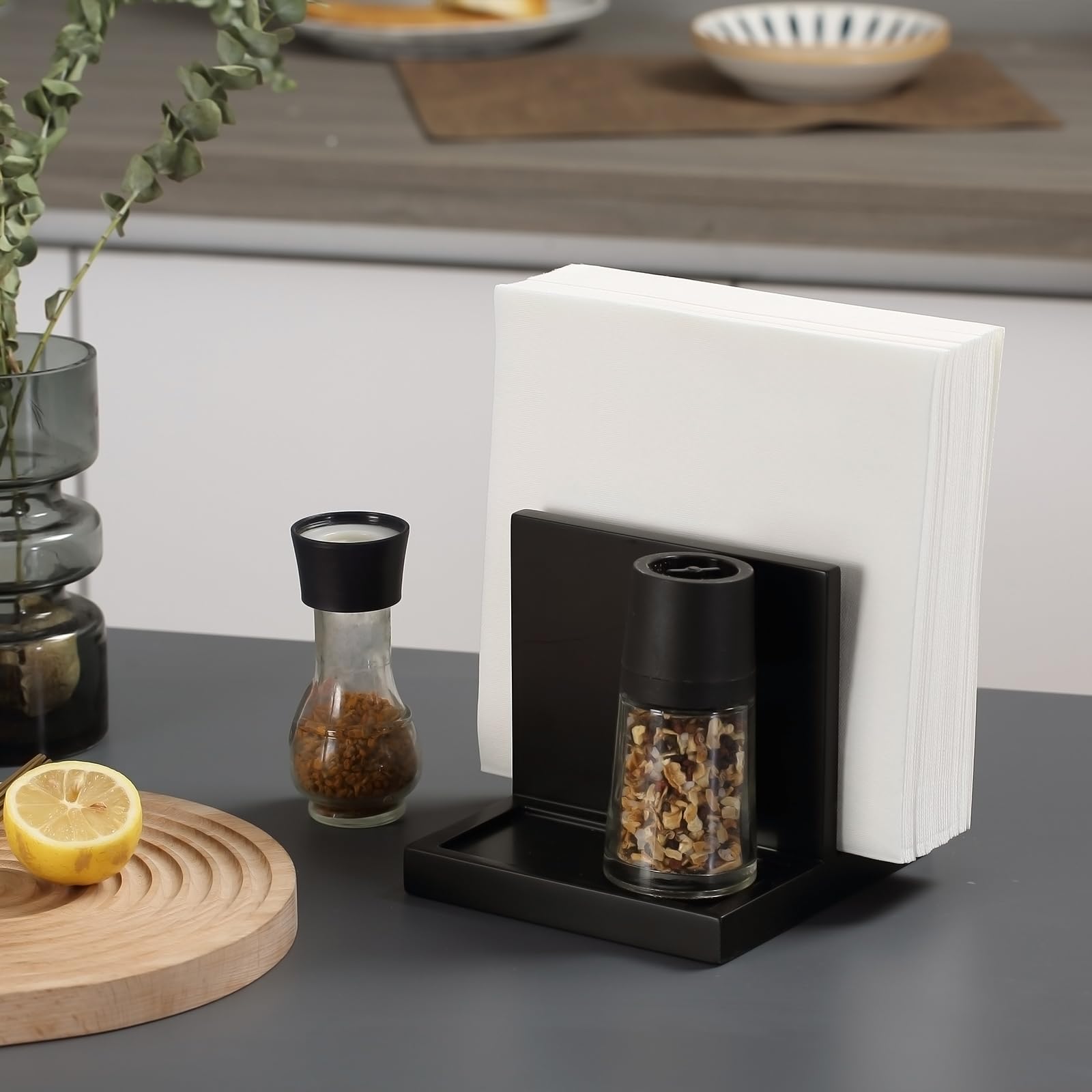 Un excellent choix de cadeau pour les membres de votre famille ou vos amis. Téléchargez cette photo Premium sur Un porte-serviettes en bois marron et des cure-dents sont posés sur la table en verre du café, illuminés par les rayons du soleil. Porte-Serviettes En Bois Et Métal - Cadre De Serviette - Distributeur Ce porte-serviettes en bois a un bord lisse pour éviter que vos mains ne soient rayées. Ce distributeur de serviettes est fabriqué en métal et base, robuste, antirouille, résistant aux rayures et durable. Il est polyvalent et pratique pour empêcher le support de tomber lorsque vous sortez les serviettes. Il peut également fournir une décoration moderne et élégante pour votre maison. Caractéristiques principales : Design minimaliste et tendance Porte-serviettes En Bois Et Métal Pour Table Avec Salière Et Poivrière, Distributeur De Serviettes En Papier Sur Pied Pour Cuisine, Salle à Manger Fabriqué en bois d'acacia massif, il est solide et durable. Une solution de rangement pratique pour garder vos serviettes, salière et poivrière proprement, économisant n'importe quelle table ou plan de travail tout en faisant un superbe point focal pour la cuisine, le restaurant, la décoration de bar, etc.