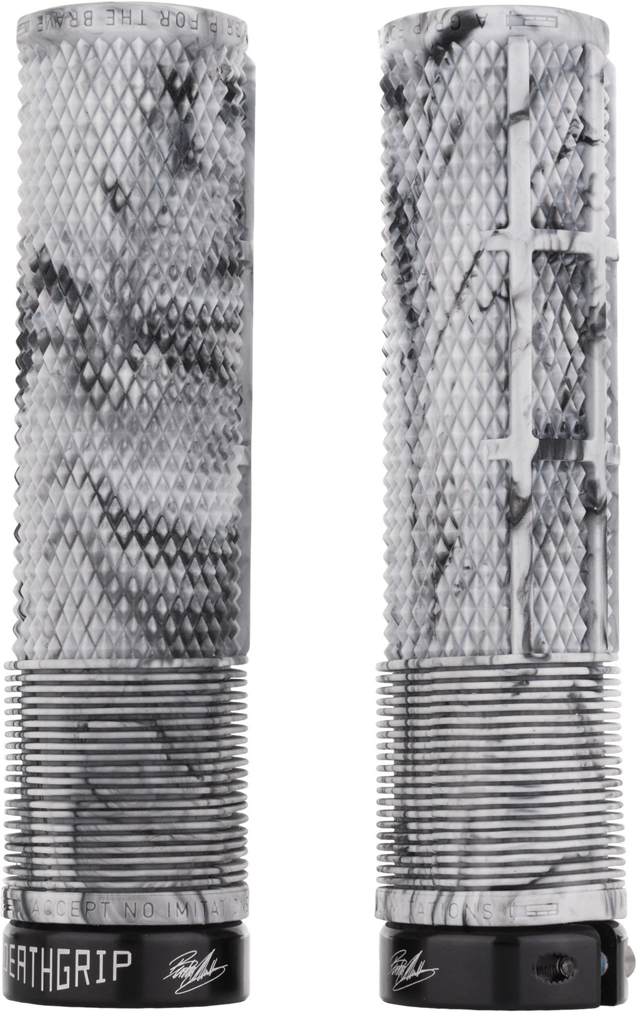 Brendan Fairclough avait ce qui suit à dire : « Je voulais rendre l'adhérence ultime pour aller sur tous mes vélos : AM à DH. Modèle de poignée en trois parties; disponibles en deux diamètres; disponible en deux versions, mince 29,8 mm ou épais 31,3 mm. Poids. 0.1 kg... DMR Grips VTT Brendog Death Lock-On, Snow Camouflage | Maciag Offroad DMR célèbre 20 ans en présentant la DeathGrip. Poignées Fines DMR Brendog Deathgrip Wit 133 Mm Les poignées DMR Death Grips Brendog Lock-On sont légendaires en VTT, BMX, gravel... Système lock-on (serrage par colliers), motif waffle, confort et adhérence max. Marque DMR, MPN DMR-Deathgrips. Neuf, sous emballage. Compatible avec pleins de vélos : Enduro, DH, BMX, gravel, électrique... Installation rapide, pas besoin de colle La DeathGrip est la deuxième collaboration entre DMR Bikes et Brendan Fairclough. DMR a commencé avec un noyau interne conique à verrouillage unique et enveloppé le design de Brendan autour de lui en mélange Kraton super doux.