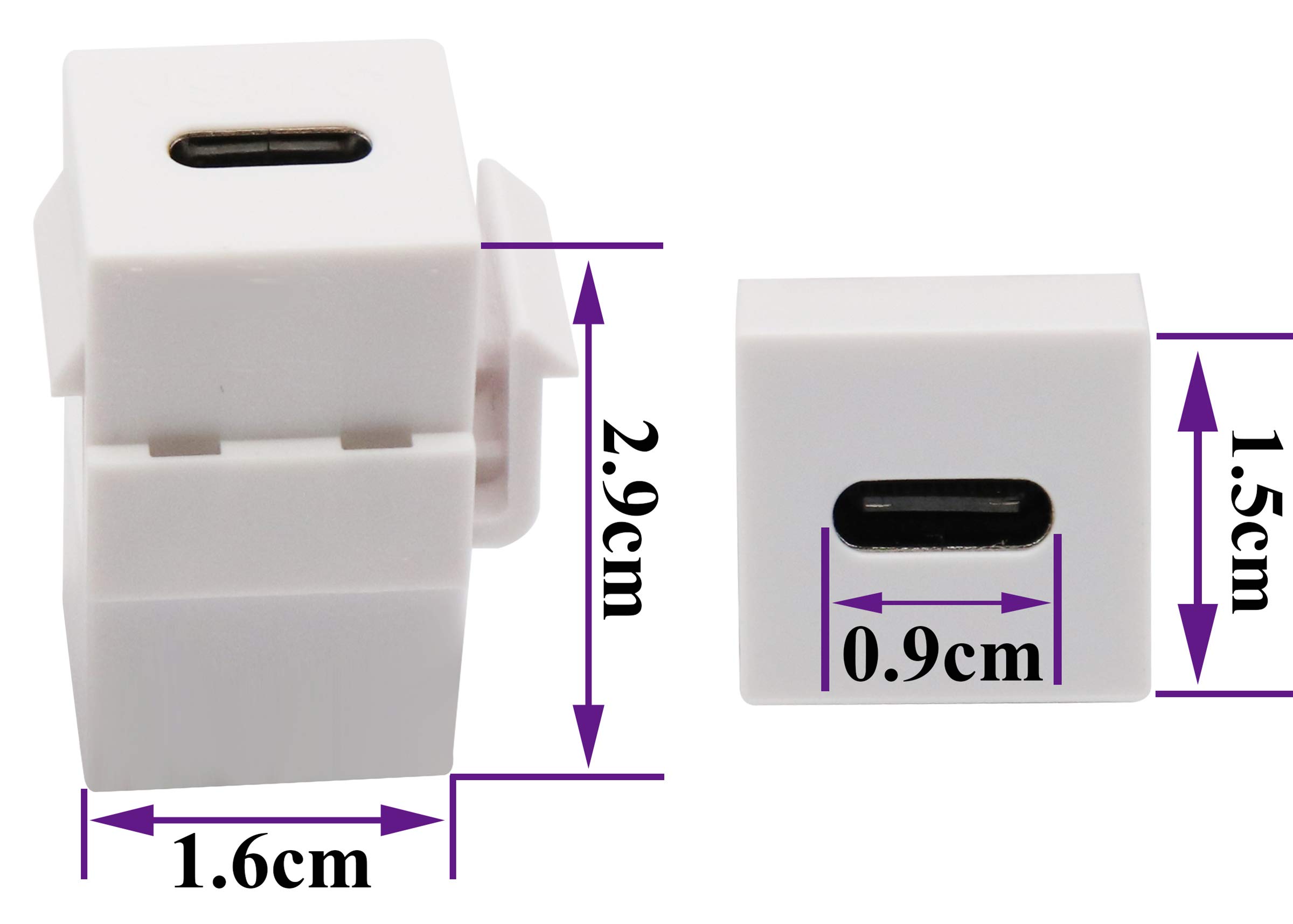 Connecte l'équipement avec des ports USB Type-C comme un PC, un ordinateur de bureau, un ordinateur portable, un téléphone intelligent, compatible avec la plupart des appareils USB c tels que Samsung Galaxy Note 8, Samsung Galaxy S8 Plus, Nintendo Switch, LG V30, G6, G5, V20, ChromeBook Pixel, nouveau Macbook et plus encore. Quantité: (2-Pack) Taille: Longueur, largeur, hauteur (2,9 cm * 1,6 cm * 1,5 cm) Matériel: plastique. La dernière douille trapézoïdale en forme de C. Il a un connecteur femelle de type C femelle à chaque extrémité, Fournit un moyen simple et sûr de connecter le câble USB-C au panneau mural,L'angle de guidage vertical est compatible avec les panneaux muraux ou les panneaux de brassage aux trous d'angle standard. Il s'agit d'un adaptateur USB 3.1 complet qui prend en... Couleur: (blanc) Connecteurs 1: prise femelle Keystone USB 3., 1 Type-C. Veuillez penser à propos de votre position d'installation avant le chargement. La dernière douille trapézoïdale en forme de C. Connecteurs 2: prise femelle Keystone USB 3., 1 Type-C., Ceci est USB 3., 1 adaptateurs complets, il prend en charge la charge, la synchronisation des données, le transfert audio et vidéo, le courant maximal est de 3A, la vitesse de synchronisation des données jusqu'à 5 Gbps. Adaptateur jack usb – Trouvez le meilleur prix Il s'agit d'un adaptateur USB 3., 1 complet qui prend en charge la charge, la synchronisation des données, la transmission audio et vidéo, le courant maximal est de 3A et la vitesse de synchronisation des données peut atteindre 5 Gbps. (Remarque: la synchronisation des données 3,5 Gbit / s et toutes les fonctions USB de type C 3., 1 dépendent de votre câble d'extension) et permettent de l'utiliser avec un câble de type C pour la vidéo de projection)(Remarque: assurez-vous que votre téléphone d'entrée ou votre ordinateur portable et le port de moniteur de sortie de type c prennent en charge l'entrée et la sortie vidéo,Veuillez l'utiliser avec le câble USB Type C 3., 1 pour faciliter la projection vidéo) Couleur blanche)Connecteurs 1: prise femelle Keystone USB 3., 1 Type-C. Usb C Vers Usb Usb C Type D'adaptateur Usb C Femelle à Rj45 10/100 / En France | Clasf Rallonge Usb Keystone Jacks – USB ; USB 3.1 Type C Keystone Adapter, 180 Degrees, Black · CKEY180 · $5.09, $4.84, $4.59 ; USB 3.1 Type C Keystone... Autres équipements avec USB Type-C avec les cables cachés derrière le mur via des plaques murales. L'adaptateur USB de type C est difficile à retirer après l'installation., )