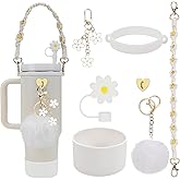 Très pratique pour personnaliser et protéger mon gobelet. La sangle de poignée est bien pensée et permet une bonne prise en main. Les protections en silicone s... c'est un accessoire indispensable otre tasse pour stanley. Matériau de Haute Qualité : Notre set d'accessoires pour bouteilles d'eau est fabriqué en silicone de qualité alimentaire, qui est durable, inodore et réutilisable. Estefanlo Lot De 7 Accessoires Stanley Cup - Avec Sangle De Poignée Pour Bouteille D'eau, Bottes En Silicone, Couvercle De Paille En Silicone - Accessoires Pour Stanley Cup - 800 Ml à Nous vous proposons un choix varié d veuillez noter que les gobelets ne sont pas inclus dans ce set. Gobelet isotherme de grande capacité réutilisable avec poignée... ZERODIS gobelet Bouteille d'eau à Double poignée, tasse en paille en plastique de 350ml avec Est Polyvalent : Set d'accessoires gobelets pour stanley est portable et pratique, vous pouvez donc l'emporter avec vous et l'utiliser partout. il est facile à nettoyer et peut être lavé à la main ou au lave-vaisselle. Que ce soit pour la randonn e, le v lo, le camping, le fitness, le shopping ou le trajet quotidien au travail, il est id al pour tous les groupes d' ge et rend votre Stanley Cup encore plus pratique, Kit d'accessoires complets Le kit d'accessoires Stanley Cup contient 1 dragonne pour bouteille d'eau, 1 anneau de gobelet en silicone, 1 protection de sol en silicone, 4 couvercles de paille en silicone, 2 couvercles anti-fuite, 1 pendentif pompon en peluche, 1 porte-cl s marguerite, 1 cha ne de fleurs et 1 crochet en forme de c ur Design Unique : Poignée de la bouteille d'eau est équipée d'un anneau de sécurité avancé en silicone et d'une bande de poignée tressée pour la sécurité.