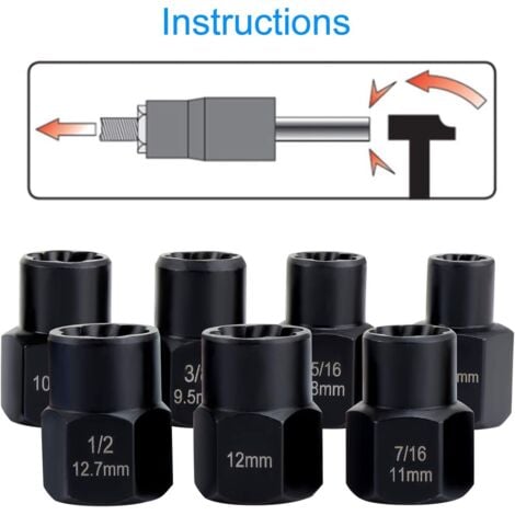 Il dispose d'un filetage spécial inversé et de dents coupées en spirale qui offrent une forte adhérence sur les fixations. Caractéristiques : Aide à retirer les écrous/boulons arrondis. Retrait d'écrous/boulons arrondis]Ce jeu de clés à douille est conçu pour aider à retirer les écrous et boulons arrondis. Il dispose d'un filetage spécial inversé et de dents coupées en spirale qui offrent une forte adhérence sur les fixations. Design profond pour les longs goujons : le design profond de ces douilles leur permet de passer sur de longs goujons et d'atteindre les... Dents coupées en spirale pour une prise en main Design profond qui passe sur de longs goujons, etc. Caractéristiques : Nom du produit : ensemble de douilles profondes. La couleur grise ajoute une apparence élégante et professionnelle. Clé à molette 3/8 sur les plats. MACHOMAN BES407 Lot de 7 écrous de roue et douilles d Ces tailles couvrent une gamme d'écrous et de boulons couramment rencontrés, assurant la compatibilité avec différentes fixations. Construction : fabriquées en acier Cr-Mo, ces douilles sont conçues pour résister à une utilisation intensive sans se dénuder ou se casser facilement. 【Retrait d'écrous/boulons arrondis】Ce jeu de clés à douille est conçu pour aider à retirer les écrous et boulons arrondis. Extracteur Ecrou Antivol Mercedes Extracteur De Roulement De Roue, Extracteur De Roulement Professionnel Extracteur De Boulon Endommagé Lot de 9 extracteurs d'écrous de boulons et écrous de roue, outil de douille torsadée, kit de retrait de verrouillage de roue Caractéristiques : Matériau : Acier Cr-Mo haute dureté. Couleur : Noir. Intérieur : Flûtes en spirale inversée : Dimensions de l'extracteur d'écrou carré de 1,27 cm : 14 mm, 16 mm, 17 mm, 19 mm, 21 mm, 22 mm, 24 mm, 27 mm. Longueur de la tige en métal Design profond pour les longs goujons : le design profond de ces douilles leur permet de passer sur de longs goujons et d'atteindre les zones encastrées, ce qui les rend pour une variété d'applications. Tailles de l'extracteur : 10 mm, 11 mm, 13 mm, 14 mm, 16 mm., Hauteur totale : 64,5 mm.