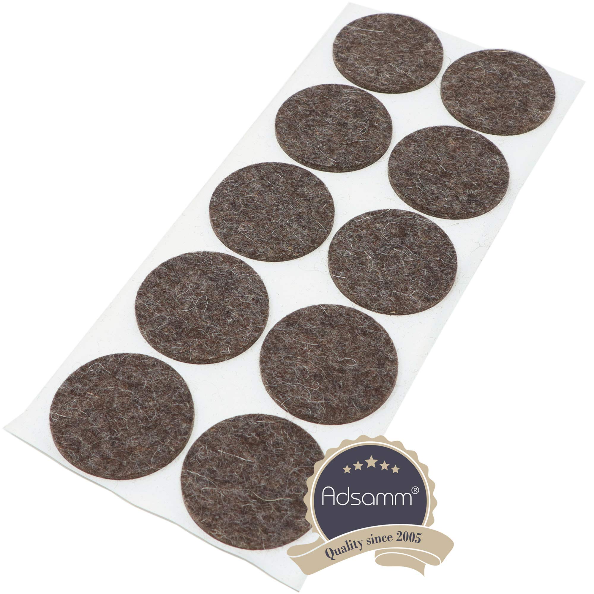 Patins adhésifs en feutre de laine de qualité Adsamm. polyvalent pour meubles moyen lourds ou légères comme patins des meubles, chaise glisse, protection des sols, ., ., et pour des chaises, des fauteuils ainsi que pour des lampes, des vases, et tout les objets sur une surface délicate. Lot de 4 patins feutre en laine adhésif, SCOTCH, diam. 50 mm, beige Les patins de meubles que vous avez choisis - patins autocollants en feutre - ont les caractéristiques suivantes : - rond avec un diamètre de 1,2 cm - Couleur : marron - Le feutre de laine a une épaisseur de 3 mm - ce qui garantit une grande résistance et protège ainsi efficacement vos meubles et sols contre les rayures et les... Haute adhérence pour une plus grande résistance. Patin Chaise Tampon Chaise Carré 24 X Patins En Feutre En Laine Véritable | 25x35 Mm | Marron | Rectangulaire | Patins Glisseurs Pied Pour Meuble Patins Pour Meubles Patins pour meubles À coller qui ont déjà fait ses preuves 1000 fois dans les particuliers et les professionnels - Contenu de la livraison : 10 patins autocollants en feutre de laine de 3 mm d'épaisseur (= 1 feuille de 10 pièces chacune) - Conseils de montage : 1., Nettoyez soigneusement la surface à coller et poncer légèrement à l'aide d'un papier abrasif fin, puis essuyez à sec. Adsamm - Qualité depuis 2005., Ø 4,5 cm / marron / rond / Epaisseur de feutre 3 mm, assurant une bonne durabilité et la protection parfaite de vos meubles et vos sols protégeant contre graisse et tache évitant des bruit désagréable ou déplacement. 2) Décollez ensuite le patin de feutre du film de protection et appliquez le côté adhésif sur la surface propre et sèche. Les patins en feutre de laine particulièrement doux et durables offrent une protection fiable pour les meubles et objets légers tels que les petites tables, boîtes, tables d'appoint, meubles pour enfants, pot de fleurs d'intérieur, cache-pot, lampadaire, vase, bougeoir, sculptures, chaîne stéréo, haut-parleurs, bloc à couteaux, boîte...