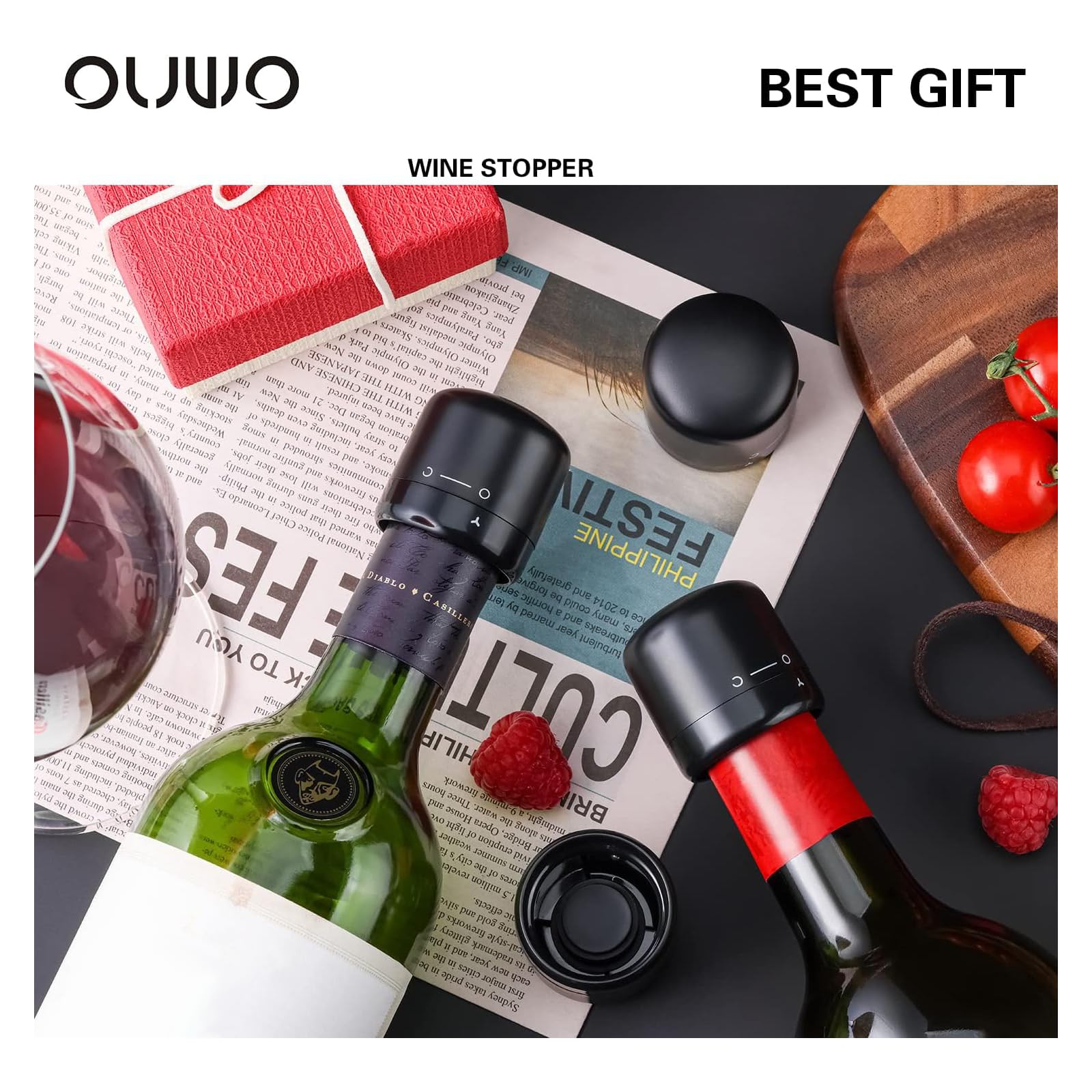 ✓ Nous nous soucions de l'environnement – Nous sommes créés à partir de matériaux 100 % respectueux de l'environnement de qualité alimentaire FDA Prolongez la fraîcheur du vin : nos bouchons à vin scellés sous vide créent un joint hermétique et étanche pour garder votre vin frais jusqu'à 7 jours après... ✓ Nous sommes réutilisables et incassables – Rien à ajouter ici, nous sommes sûrs que vous l'apprécierez ✓ Nous sommes des bouchons de vin qui gardent votre vin frais pendant des jours – Nous sommes des bouchons de bouteille de vin en silicone qui créent un joint hermétique sous vide, et nous sommes adaptés au congélateur et au lave-vaisselle Lot De 4 Bouchons De Vin Réutilisables En Silicone Pour Garder Le Vin Et Le Champagne Frais Pour Un Usage Domestique Pompe à vin Krumble et deux bouchons à vin / Pompe à vide pour garder Gardez votre vin frais en toute simplicité avec les bouchons à vin Vitrix Kitchenware colorés, durables et flexibles en silicone. Préserve et prolonge la durée de vie de vos bouteilles de vin ouvertes., Lot de 4., Un cadeau pratique pour les amateurs de vin., ., ., pour les moments où la bouteille n'est pas terminée.
