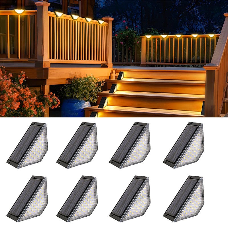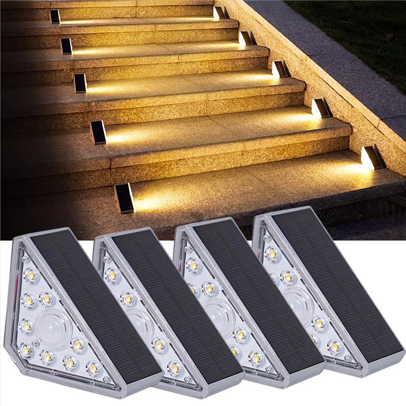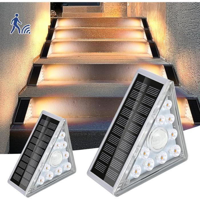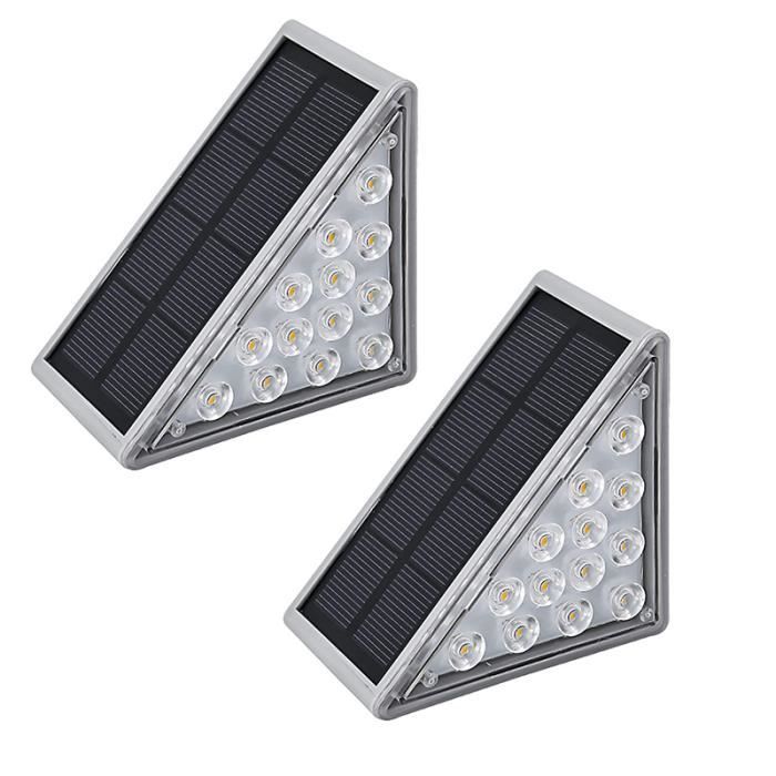 ROSHWEY lampes solaires d'escalier pour l'extérieur, lampes solaires d'escalier Lampe solaire, Lot de 16 lampes solaires d'extérieur pour Mode de fonctionnement automatique : la lampe solaire d'escalier n'a pas d'interrupteur, il suffit de retirer la feuille isolante pour l'utiliser. Par une journée ensoleillée, ça prend seulement 4 à 5 heures pour une charge complète. Il peut s'allumerautomatiquement au crépuscule et s'éteindre à l'aube.Large gamme d'utilisations : les lampes solaires de clôture extérieures sont... CREATESTAR Lampe Solaire Pour Escalier, Lot De 4 Lampes Solaires D'extérieur De Couleurs RGB IP67 Etanche Lumière Solaire Jardin Pour Escaliers, Marches, Jardin, Terrasse Un an de garantie de service, achat sans soucis Fonctionnement automatique : Cette lampe solaire d'escalier n'a pas d'interrupteur marche/arrêt ; il suffit de retirer la feuille isolante pour l'allumer. Par temps ensoleillé, elle se charge complètement en seulement 4 à 5 heures. Elle s'allume automatiquement au crépuscule et s'éteint à l'aube.Installation facile : Cette lampe solaire peut être fixée n'importe où à l'aide de vis... Panneau solaire à haute conversion : le design triangulaire lui donne un panneau solaire plus grand que les autres lampes solaires d'escalier, le taux de conversion du panneau solaire est jusqu'à 21 %, lorsque la lampe solaire est chargée pendant 4 à 5 heures à la lumière du soleil pendant la journée, elle peut continuer à éclairer pendant plus de 10 heures la nuit. Étanche et durable : lampes solaires d'extérieur étanches IP65, avec un design en matériau ABS de haute qualité, installées à l'extérieur, ne craignent pas le soleil et la pluie, il suffit de garder le panneau solaire propre, peut vous fournir un éclairage ultra-long à la tombée de la nuit. Installation facile : pas de câblage supplémentaire nécessaire, il suffit d'utiliser du ruban adhésif double face pour coller à la lampe solaire et coller à n'importe quel endroit extérieur dont vous avez besoin. Découvrez comment l'énergie solaire évolue avec les premiers panneaux solaires triangulaires.