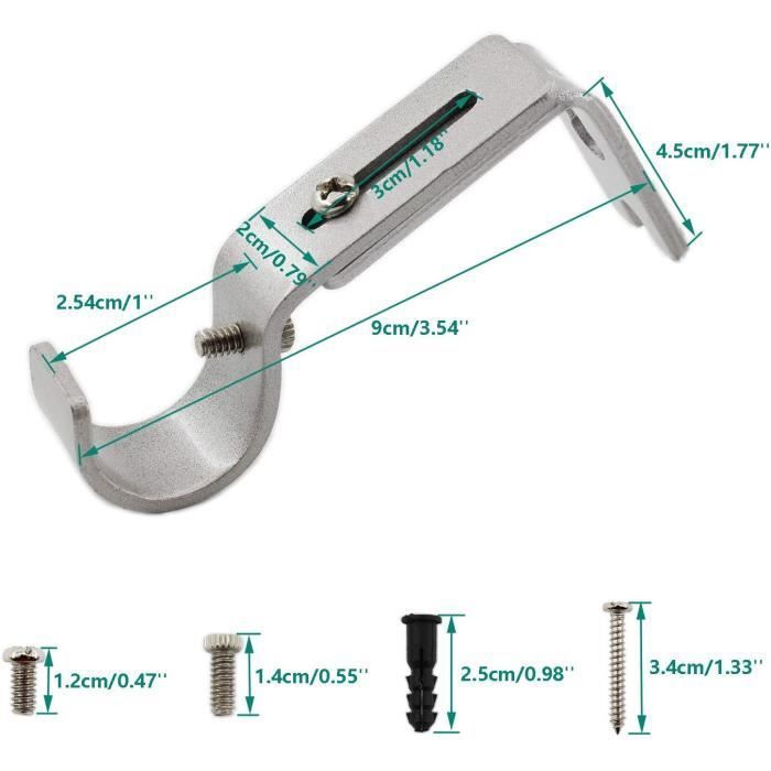 Support De Tringle à Rideaux Sans Percage 4 Pièces Support De Tringle A Rideau, Support Barre Penderie, Bracket Support Pour Tringle Spécial Coffre De Volet Roulant Matériau de haute qualité et inoxydable : Ces supports mural réglable pour tringle sont fabriqués en métal durable. Tringle de rideau réglable diamètre 16-19mm tension à ressort pour Le matériau métallique de haute qualité assure une stabilité et une durabilité supplémentaires, garantissant que les supports ne se plient ni ne se cassent. ALLisWE 2 Pièces Support de Tringle à Rideau Réglable 20 à 25 mm Supports Mural Réglable pour Tringle avec Vis Extensible Fixation pour Tringles Avec les vis et chevilles incluses, vous pouvez fixer rapidement et facilement les crochet tringle rideau à l'endroit souhaité. Spécifications : Couleur : Argent Matériau : Métal Longueur réglable avant et arrière : 3 cm Diamètre de tringle à rideau approprié : 20-25 mm Dimensions détaillées du produit : Voir tableau des tailles Conseils utiles : Toutes les dimensions sont mesurées manuellement, une erreur de 2-3 mm peut se produire. Cette flexibilité les rend idéaux pour une grande variété d'applications, des tringles à rideaux aux tringles de douche en passant par les tringles à vêtements. L'installation des supports de tringle à rideau ALLisWE est très simple. Design polyvalent et moderne : Le design simple et moderne de ces support rideau s'adapte à différents styles de décoration et s'intègre parfaitement dans n'importe quel intérieur. Support de tringle à rideaux sont le choix idéal pour fixer des tringles à rideaux dans différentes pièces de votre maison. Suffisamment robustes pour résister à une utilisation répétée, ces support pour tringle à rideau métal sont un choix fiable et durable pour vos installations de rideaux. Ces tringle rideau dressing conviennent à la fois pour de nouvelles installations et comme supports de remplacement pour des tringles à rideaux existantes, ce qui en fait une solution pratique et polyvalente pour votre maison. Tringle de rideau réglable diamètre 16-19mm tension à ressort pour... Les supports pour tringles à rideaux argentés conviennent à la fois pour de nouvelles installations et comme supports de remplacement pour des tringles à rideaux existantes. Longueur réglable pour une utilisation flexible : Ces supports de tringle à rideau disposent d'un design extensible qui permet une extension allant jusqu'à 3 cm. Avec un design flexible permettant une extension jusqu'à 3 cm, vous pouvez ajuster les support de tringle de plafond pour tringle à rideau selon vos besoins. Cette fabrication de haute qualité empêche la formation de rouille et garantit que les support pour tringle à rideau métal conservent leur apparence attrayante même après des années d'utilisation. La conception robuste donne aux supports de rail de rideau une plus grande capacité de charge et une durée de vie plus longue. Facile à installer : équipé de vis de montage et de chevilles murales, vous pouvez facilement installer le support de tringle à rideau au plafond ou au mur Fabriqués en métal de haute qualité et dotés d'un revêtement élégant et inoxydable, ces support tringle rideaux plafond conservent leur apparence attrayante même après des années d'utilisation. Installation facile avec vis incluses : L'installation de ces support barre rideau argentés est un jeu d'enfant.