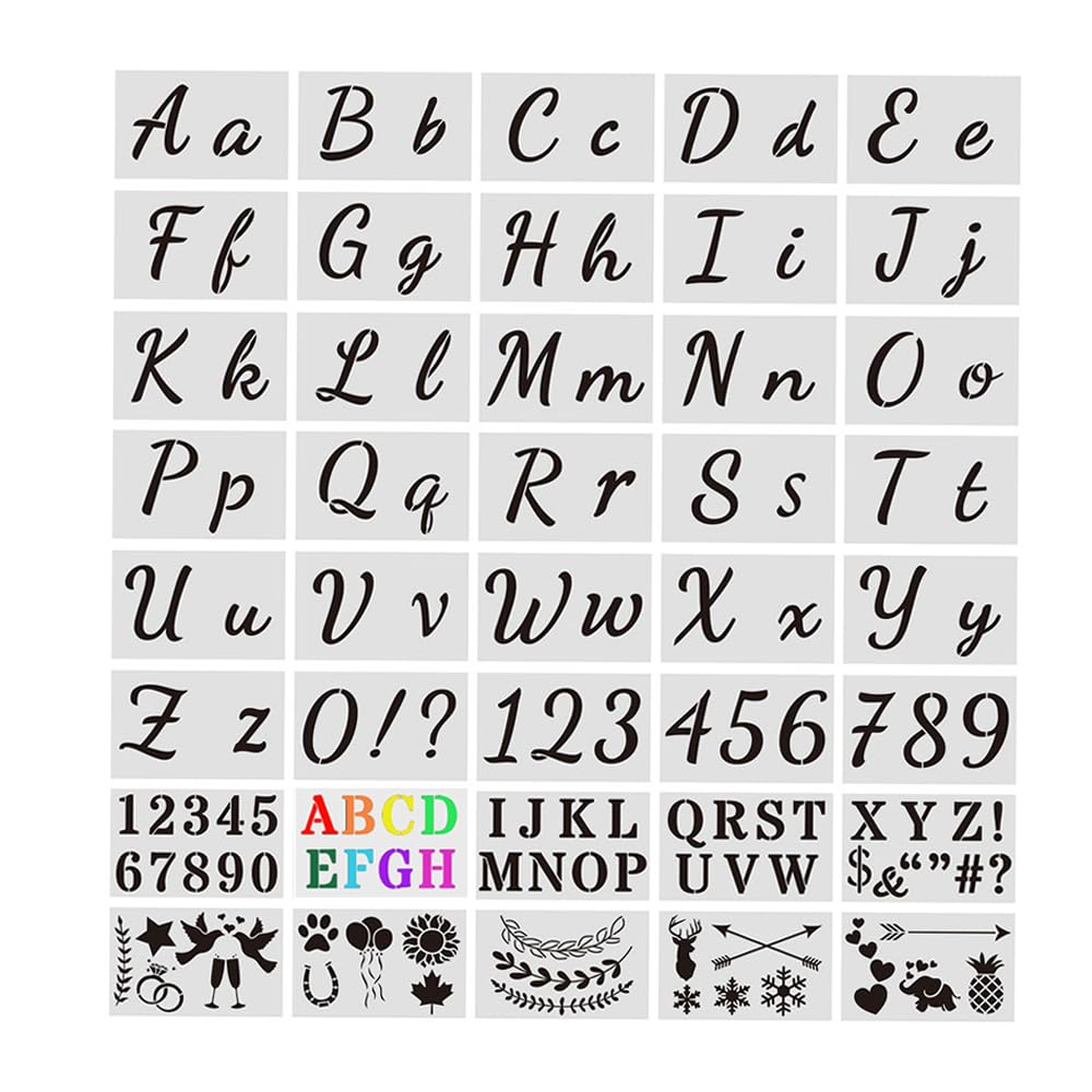 Caractéristiques : 1., Vous recevrez 40 pièces de pochoir lettre alphabet, une quantité suffisante pour répondre à vos besoins quotidiens., 2., Les pochoir lettre alphabet sont fabriqués en PET de haute qualité, robuste et durable, pas facile à user et à déchirer, coupe lisse, durable., 3., Les pochoir lettre alphabet peuvent être utilisés pour dessiner sur les panneaux en bois, les murs, les meubles et le scrapbooking, vous pouvez également créer vos propres dessins uniques avec 128 tailles différentes de pochoirs de chiffres et de lettres. Réutilisable après nettoyage, de petite taille, il peut être placé au hasard, facile à ranger et à nettoyer. Achat pochoir lettres et chiffres - Street Art Perso Ce pochoir alphabet sera parfait pour imprimer des lettres régulières à la peinture notamment. Conseil d'utilisation : Fixez toujours le pochoir pour maintenir le motif pendant l'application de peinture. Vous pouvez utiliser du ruban adhésif pour cela ou une pâte collante repositionnable Matériau PET : Le matériau du pochoir lettre alphabet est le PET, résistant à l'usure et flexible, le matériau n'est pas facile à casser, découpé au laser, bords lisses. Pochoir Chiffre , 45 Pièces Norographe Lettre, Pochoir Lettre Alphabet Spécifications : Matériau : PET Quantité : 40 pièces au total Couleur : comme indiqué sur l'image Taille : comme indiqué sur l'image Contenu de la livraison : 40*pochoir lettre alphabet Attention : 1., Si vous avez des questions, n'hésitez pas à nous contacter., 2., En raison de la différence d'écran, s'il y a une différence de couleur, veuillez vous référer à l'objet réel., 3., la taille est mesurée manuellement, veuillez accepter une erreur de 0,2cm-0,5cm, cela n'affectera pas l'utilisation normale du produit. Comprend des chiffres et des lettres fantaisie et standard, un total de 128 modèles pour répondre à vos différents besoins en matière de chiffres et de lettres. Contenu de l'emballage : 40 modèles différents de pochoir lettre alphabet, dont 52 lettres majuscules, 26 lettres minuscules, 20 chiffres, 30 symboles couramment utilisés, 5 cas de peinture. Pochoir Lettre Alphabet,Pochoir Chiffre,Pochoir à Lettres,Pochoirs pour...