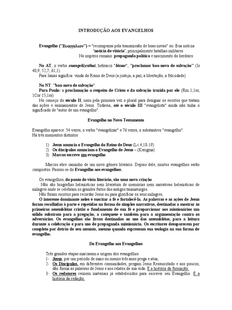 Os quatro Evangelhos - Mateus, Marcos, Lucas, João (Edição bilíngue Gr A obra se divide em cinco partes: 1- Breve história do período intertestamentário como pano de fundo para o estudo da vida de Jesus e de Israel do primeiro século. 2- Os métodos críticos que os acadêmicos utilizam para estudar os Evangelhos. 3- Uma introdução a cada Evangelho. 4- Panorama sobre a vida de Jesus, sua obra e ensinamentos... Introdução Aos Evangelhos - José Lucas Galdino Da Silva פרטי הספר · שפה. Portuguese Brazilian · מוציא לאור. Vida Nova · מידות. 22.8 x 15.8 x 2.6 cm · ISBN-10. 8527507412 · ISBN-13. 978-8527507417