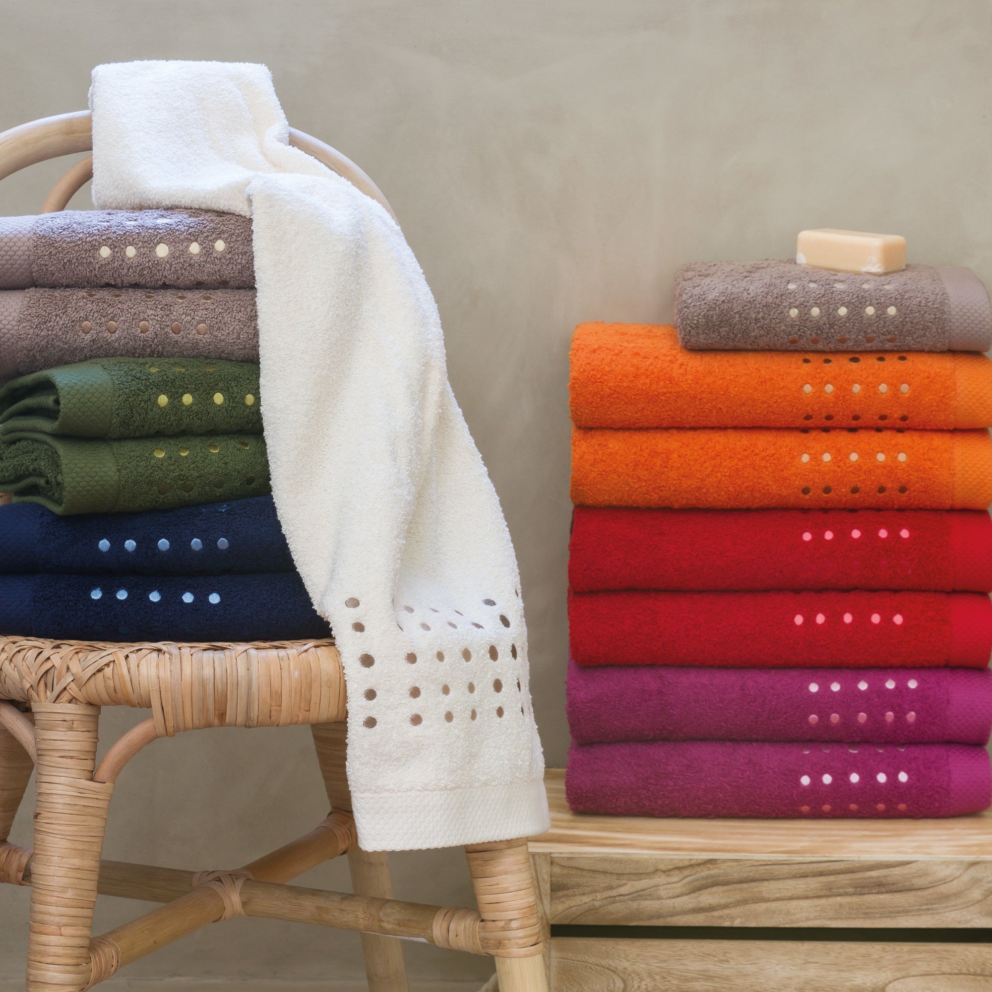 Très belle qualité d'éponge douce et moelleuse Le mélange des carrés brodés et des couleurs vives lui donne un style vif et rayonnant. Serviette De Toilette Drap De Douche 70x140 Cm 100% Coton 550 G/m2 Serviette De Bain Linge de bain réalisé en coton 550 g/m2, à la fois doux et moelleux pour une absorption et un confort parfait. Broderies sur fond uni, Forme rectangulaire, Dimensions 50x100 cm, Poids 275 g, Fabriqué au Portugal Linnea Pure Primavera Serviette À Main Vert 50 X 100 Cm Côté technique : Matière : 100% coton cardé, Grammage : 550 g/m² Une finition sobre avec un encadrement géomètrique jacquard. Belle qualité d'éponge douce et moelleuse. Linge de bain certifié Standard 100 OEKO-TEX, pour des... Pas d'entretien professionnel à sec ✔️ Serviette de toilette 50x100 cm PURE PRIMAVERA 550 g/m2, broderies - Vert Pistache - Fabriqué au Portugal Les plus du produit : Finition sobre avec liteau Jacquard, Fil simple Serviette de toilette 50x100 cm PURE PRIMAVERA 550 g/m2, broderies - Vert Pistache - Fabriqué au Portugal ... Couleur du produit: Vert, Matériel: Coton... Serviette de toilette 50x100 cm PURE PRIMAVERA 550 g/m2, broderies - Vert Pistache - Fabriqué au Portugal Séchage en tambour autorisé, température modérée 60°C Côté pratique : Entretien facile : Lavable en machine à 60°C, javel et clore interdit; Séchage en sèche-linge à température réduite