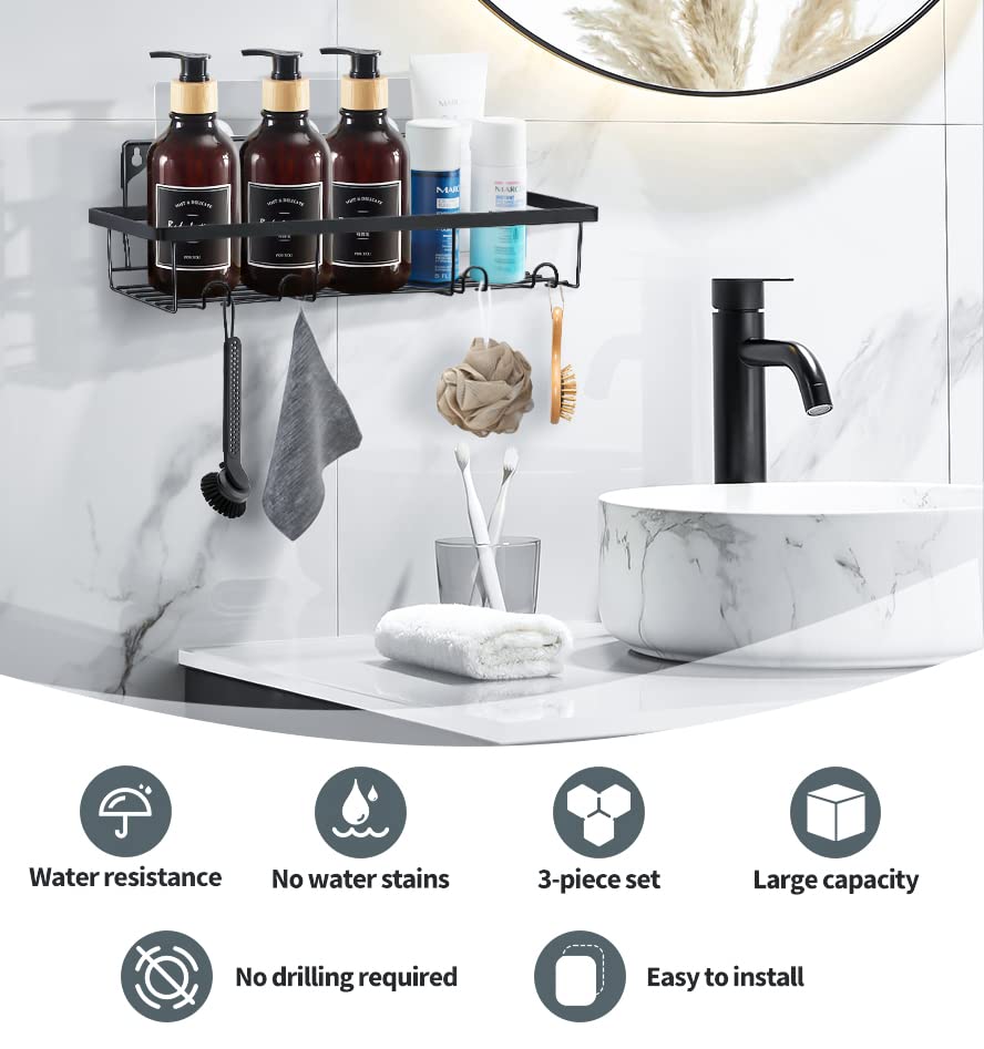 Installation sans perçage : HomeHack adopte une installation sans perçage, applicable à une variété de surfaces murales différentes, peut être fait sans clouer le mur, sans trous, excellente protection de nos murs. Set de 3 étagères de douche sans perçage, inox, noir, avec porte-savon, avec crochets, pour salle de bain et cuisine, salon · Commander et payer via... Design humanisé : les paniers de douche sont conçus avec des clôtures doubles surélevées pour réduire le risque de chute d'articles, permettant à nos articles d'être triés et placés de manière ordonnée. De plus, le panier de douche est fabriqué en matériaux métalliques et avec un processus de pulvérisation de poudre qui vous permettra d'éviter la corrosion dans un environnement humide. Etagere Douche Lot De 3 étagères De Douche Sans Perçage - Sans Perçage - Avec Porte-savon, Crochet Et Colle - En Acier Inoxydable - Pour Salle De Bain Et Cuisine Etagere De Douche Sans Percage 3 pièces Porte Savon Douche pour Tringle de Douche INOX, étagère Douche antirouille sans perçage, Rangement Douche - Bricolage HomeHacks Caddies de douche, 3 pièces Multi-sélection : le lot de 2 étagères de douche HomeHack dispose d'un grand panier (28,7 x 9,7 x 8,4 cm), un petit panier (30,2 x 11,2 x 8,9 cm), vous pouvez librement l'installer selon différentes tailles pour une variété d'utilisations, peut vous aider à économiser de l'espace supplémentaire.