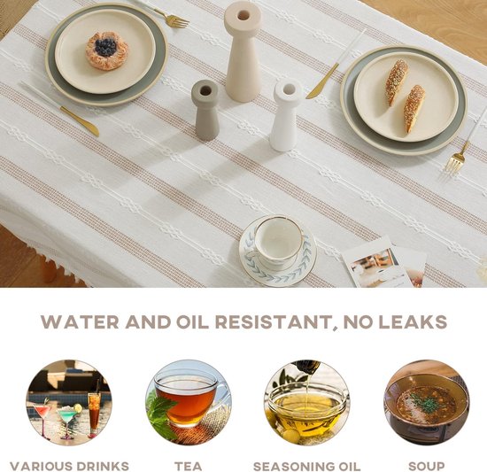 Bordure avec bande passepoilée La nappe en lin Premium a-t-elle des plis ? Non, grâce à sa technologie anti-plis améliorée, la nappe en tissu ANRO ne se plie pas et ne se froisse pas. Variété de designs La nappe en tissu ANRO séduit par son large choix de 23 superbes designs., Découvrez-la maintenant ! Très facile d'entretien. Une nappe en tissu avec un motif café de 260 x 140 cm avec ourlet (bordé) rectangulaire. La nappe en tissu Premium est composée de matériaux de haute qualité - 70% coton & 30% polyester. Si une tache reste sur la nappe en tissu, elle peut être lavée en machine à 30 °C. Gastronomie Populaire dans les restaurants et les cafés, facile à nettoyer et à protéger de la saleté. Notre nappe lavable est idéale pour un usage quotidien. Fabriquée à partir d'un mélange de qualité supérieure de 70 % coton et 30 % polyester, la nappe textile offre une combinaison optimale de lavable et de durabilité. Cette nappe est lavable et facile d'entretien. Les nappes en tissu ANRO de qualité supérieure sont bordées à la main avec amour & soin. Protection de l'humidité Nappe camel 150x250cm - Gaia | Fabrique de Styles Les petits enfants peuvent désormais profiter de leurs repas détendus et sans stress. Nappe Linge De Table Chic Nappe En Tissu Textile Lavable - Coton Et Polyester - Café Nappes En Tissu De Table 1 Variété de designs 2 Bon sur la cuisine 3 Salle de séjour 4 Terrasse - Extérieur 5 Gastronomie Les nappes en tissu ANRO ont-elles une longue durée de vie ? Les nappes en tissu ANRO sont fabriquées à partir de matériaux de haute qualité (70% coton - 30% polyester) et peuvent avoir une longue durée de vie si elles sont correctement entretenues et manipulées. Il est recommandé de les laver à basse température. Important : la nappe textile doit être repassée uniquement sur l'envers. Les liquides renversés perlent sur la nappe en tissu et ne pénètrent pas dans les fibres. Quels sont les avantages de la nappe en tissu ANRO ? Les nappes en tissu offrent des matériaux de qualité, du confort & de la durabilité. Terrasse - Extérieur La nappe textile convient pour l'intérieur et le jardin. Peut-on laver & repasser la nappe ? Oui, les nappes ANRO peuvent être lavées sans problème. Nappe rectangulaire 140 x 260 cm, lavable, en polyester café clair, avec pompons, rayures élégantes, polyvalente, décoration d'intérieur et d'extérieur. Nappe...