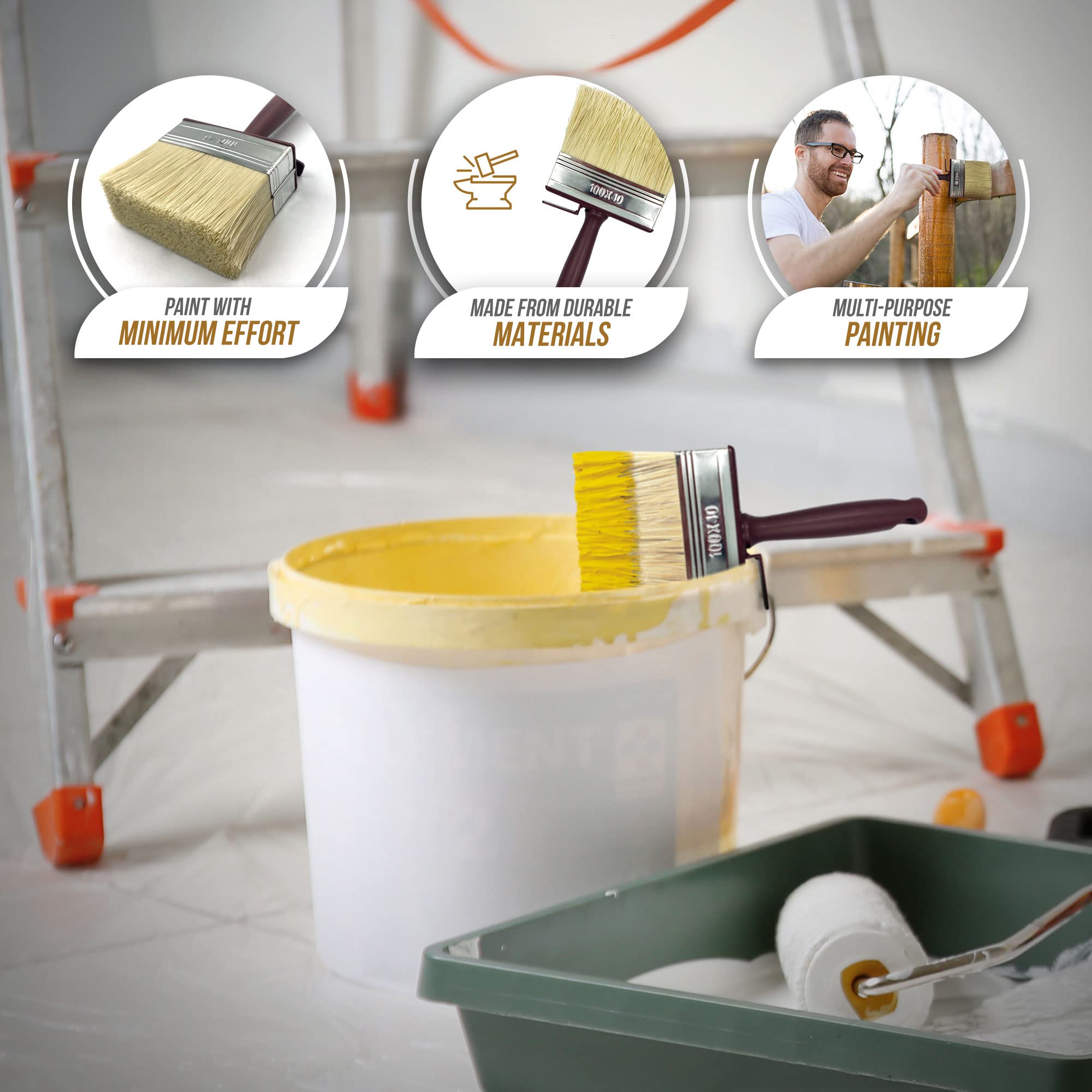 Cela s'explique par le fait que notre grand pinceau dispose de pointes douces pour fournir une finition lisse, uniforme et de haute qualité pour tous les types de projets de peinture d'intérieur et d'extérieur. Plus grand, mieux et plus large : avec le pinceau SOL de 10,2 cm, vous obtenez un pinceau plus grand, mieux et plus large qui peut absorber plus de peinture. Plus grand, mieux et plus large : avec le pinceau SOL de 10,2 cm, vous obtenez un pinceau plus grand, mieux et plus large qui peut absorber plus de peinture Avec un trou de suspension pour garder vos pinceaux facilement lorsque vous arrivez enfin à poser vos pieds. Prise en main efficace Conçu avec une poignée en caoutchouc pour une meilleure prise en main Prêt à affronter tous vos travaux de week-end : idéal pour peindre rapidement les murs intérieurs, les plafonds. Description du produit Pinceaux de peinture de 4 pouces Le pinceau SOL DIY de 10,2 cm est conçu pour la peinture extérieure et intérieure. Les poils anti-goutte sont coupés uniformément et maintenus fermement sur la brosse tandis que la brosse elle-même est reliée de manière durable à la virole. Avec nos 3 pinceaux de 10,2 cm, non seulement vous ferez le travail plus rapidement, mais vous n'aurez pas à le faire à nouveau en un clin d'œil. Uootach Lot de 5 pinceaux à Peinture, Pinceau Plat à anche en Bois... Un investissement intéressant : notre lot de 3 pinceaux de 10,2 cm est fabriqué avec des fibres plus épaisses et plus résistantes que vous ne trouverez généralement pas. Lot De 3 Pinceaux De Peinture De 10.2 Cm Pour Peinture Intérieure Et Extérieure,Grand Pinceau De Peinture,Idéal Comme Pinceau De Peinture De Clôture, De Terrasse, De Hangar, De Peinture D'extérieur Poils solides Dispose de filaments durables qui se plient bien et pénètrent dans tous les domaines pour une répartition uniforme de la peinture Conçu pour la peinture extérieure et intérieure Idéal pour peindre les murs, les plafonds et les espaces extérieurs Ces 3 pinceaux de 10,2 cm peuvent également servir de pinceau de clôture, de pinceau de peinture pour terrasse, de pinceau de clôture, de pinceau de hangar et de pinceau de peinture pour extérieur. Pointe pinceau douce Offre une finition lisse, uniforme et de haute qualité Grand pinceau de peinture, 12 cm de large pour abris de jardin, poils synthétiques souples à filaments pour taches, sceller et peindre rapidement (pinceau pour abri de jardin et clôture 120x30 mm