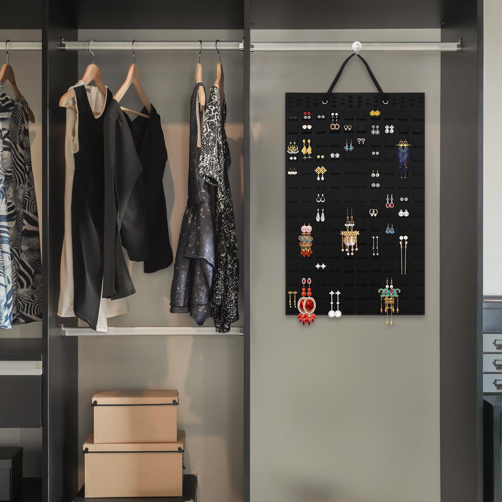 Description : Caractéristiques : 1 paquet., Couleur : noir., Style : 57 x 35 cm., Matériau : feutre. Confectionnez vos boucles d'oreilles avec La Petite Epicerie ! Extravagante ou discrète, vous trouverez votre bonheur parmi nos nombreux accessoires pour création de boucles d'oreilles Matériau fiable : le support de boucles d'oreilles est fabriqué en feutre naturel double face, durable et léger, facile à mettre et à enlever, maintient facilement vos boucles d'oreilles fermement en place Porte Boucles D'oreilles Perchées Support De Boucles D'oreilles à Suspendre, Organisateur De Porte Boucles D'oreilles Arbre Cadeau idéal : l'organisateur de boucles d'oreilles est idéal pour les amis et la famille autour de vous, les aide à exposer et organiser leurs boucles d'oreilles, formant un présentoir unique pour boucles d'oreilles à suspendre Découvrez notre vaste gamme de Support de boucles d'oreilles à suspendre, organisateur de boucles d'oreilles grand format, colliers, bracelets, bijoux et lunettes. Présentoir mural pour boucles d'oreilles pour la maison. Peut contenir jusqu'à 300 paires chez SHEIN, partie de notre Organisateurs à bijoux à suspendre Retours gratuits Livraison gratuite dès 39€ d'achat Plus de 500... Supports pour les boucles d'oreilles, pendantes et créoles Grande capacité de stockage : taille du support mural pour boucles d'oreilles : 56,9 x 35,1 cm, la boîte de rangement pour boucles d'oreilles est conçue avec 150 pièces en feutre, chaque pièce en feutre dispose de 4 trous, peut contenir 300 paires de boucles d'oreilles Scène de rangement : rangement de chambre.