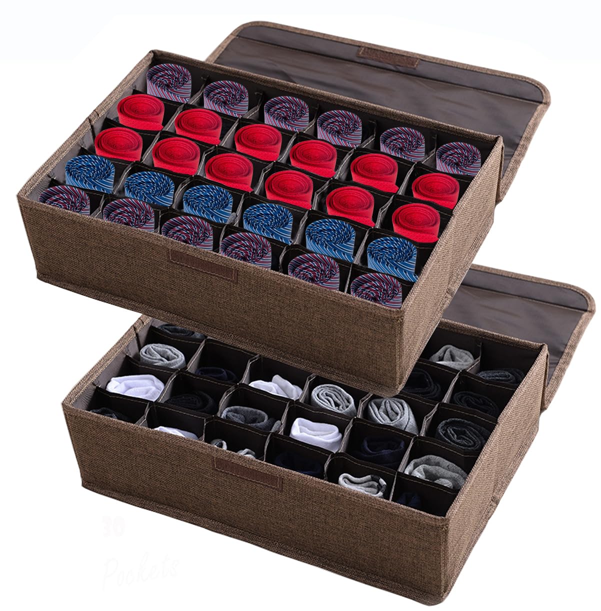 Polyvalent : ces 2 boîtes de rangement pour cravates, chaussettes pour tiroirs de commode sont parfaites pour organiser chaussettes, cravates, ceintures, mouchoirs, sous-vêtements, lingerie, etc. La construction respirante assure la circulation de l'air, réduit l'odeur des vêtements et maintient la fraîcheur Taille décente : vous recevrez 2 organiseurs d'armoire, chacun mesure 32 x 32 x 10 cm. AARAINBOW Lot de 2 organiseurs de rangement pliables en tissu pour Faciles à assembler en seulement deux secondes, ils vous permettent de garder vos affaires en ordre sans avoir à diviser votre tiroir en plusieurs sections. Ces séparateurs sont idéaux pour organiser vos vêtements et gagner du temps lors de la recherche de vos chaussettes Et les panneaux d'insertion en polypropylène haute densité sont robustes, pas faciles à plier, à déformer ou à casser. Lot De 2 Séparateurs De Tiroir Pour Chaussettes, Sous-vêtements Habituellement utilisé comme organisateur de sous-vêtements, boîte à cravates, organisateur de rangement de sous-vêtements, boîte de rangement pour culottes. L'organisateur de rangement pour tiroirs de commode peut être plié à plat pour économiser de l'espace lorsqu'il n'est pas utilisé pour un rangement facile Structure stable : organiseur de chaussettes pour tiroir fabriqué en tissu PBT durable et coutures délicates, résistant à l'humidité et aux déchirures. Le rangement pour cravates peut être utilisé dans la chambre, la buanderie, l'armoire, les tiroirs, l'armoire ou sous le lit. Avec une taille appropriée, ces organiseurs de chaussettes peuvent également être utilisés pour les ceintures, les cravates, les mouchoirs, les accessoires pour...