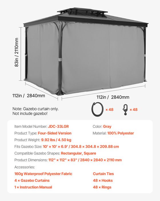 Remarque : rideaux d'intimité uniquement, le toit supérieur et la tonnelle ne sont pas inclus Rideau d'intimité pour Tonnelle Imperméable Extérieur-VEVOR-Rideaux... Promo Tonnelle Belize 3.6 X 3 M Hesperide chez Maxi Bazar Installation : facile à fixer avec des anneaux ou des crochets à clipser, qui répondent aux besoins des différentes structures de tonnelle. Aoodor Moustiquaire De Rechange Universelle à 4 Panneaux Avec Double Fermeture éclair Pour Patio, Jardin, Terrasse Et Pelouses (filet Uniquement) – 3 X 3,7 M – Marron Rideaux de tonnelle 2 en 1 améliorés : les parois latérales universelles avec un design 2 en 1, chaque rideau d'intimité est livré avec une fenêtre en maille à tirer. Vous pouvez facilement l'utiliser entre les moustiquaires et les rideaux d'intimité selon vos besoins. Peut être utilisé en toute saison, Matériau durable : les rideaux de rechange pour tonnelle sont fabriqués en... Fonctions : le rideau de tonnelle universel de 3,6 x 3,5 m offre une protection de l'intimité tout en profitant de la vie en plein air pour se détendre ou manger. Les fermetures éclair sont fabriquées en résine de haute qualité et conçues avec des têtes doubles permettant à l'utilisateur d'ouvrir ou de fermer la tonnelle non seulement de l'extérieur mais aussi de l'intérieur.