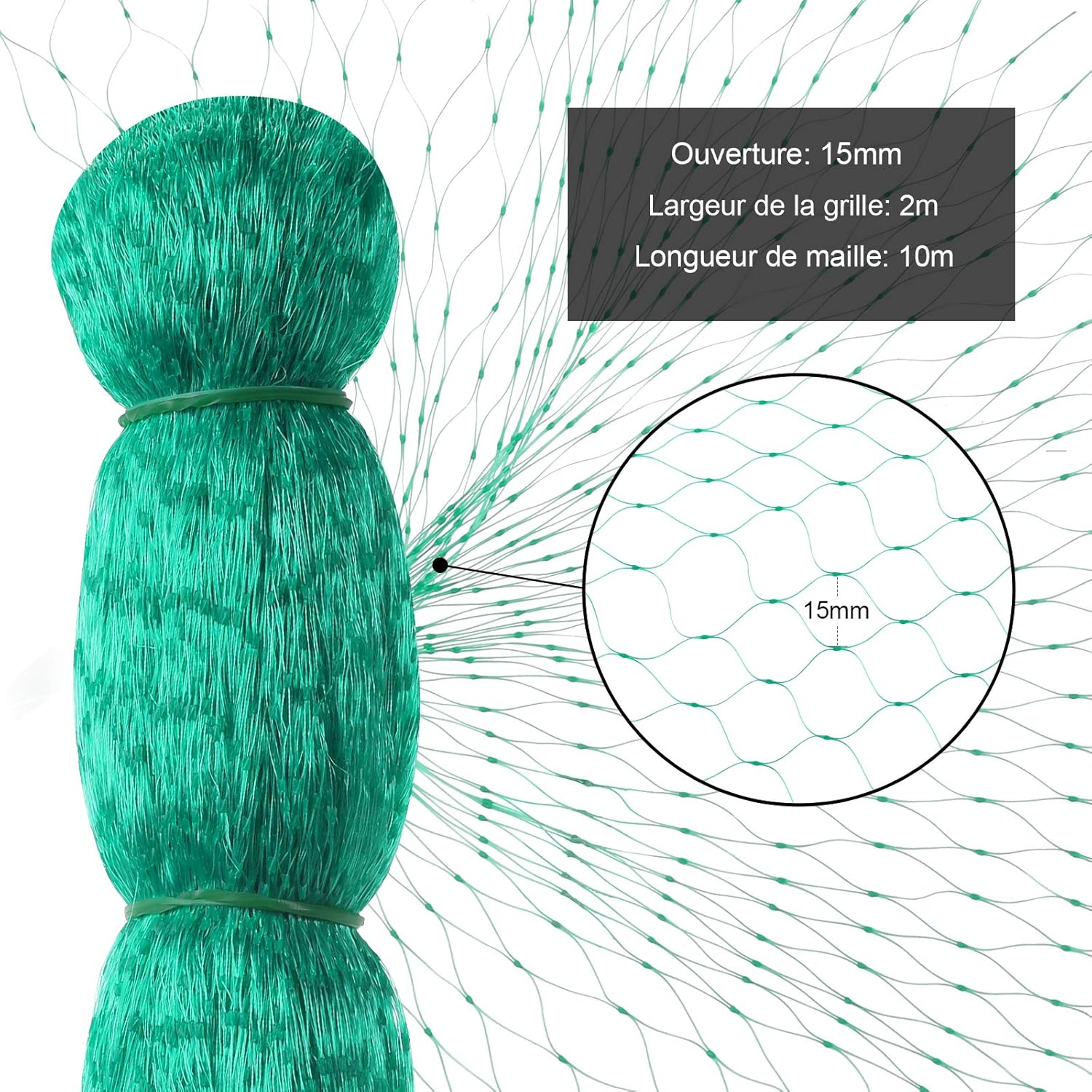 Facile à utiliser: Notre filet anti oiseaux vert est très facile à installer, simplement attacher simplement à la pieu ou à couper toute taille car vous devez le mettre sur le jardin ou le bassin comme filet d'oiseau pour les arbres fruitiers, il peut également être utilisé comme clôture de jardin, un écran de clôture. Fort et réutilisable: Filet de jardin et durable en polypropylène de haute qualité, légère mais lourde, UV et résistant à la pourriture, suffisamment coriace... Filet Anti Oiseaux 4X10m, 2 Pcs Filet de Jardin, Filet de Protection Il se plie et s'ouvre facilement, vous pouvez donc l'utiliser encore et encore. XIO Filet Anti Oiseaux Filet De Protection Anti Oiseaux 4x10M Insecte Matériau Résistant]Le filet à oiseaux est en nylon de haute qualité, solide, durable, à haute élasticité, résistant au vieillissement, léger mais solide... Caractéristiques: --Comme filet anti-oiseaux pour le jardin, idéal pour protéger les arbres fruitiers, les légumes --Le filet pour bassin protège efficacement votre bassin ou votre piscine contre les branches, les feuilles et les prédateurs -- Filet protection oiseaux en matériau PP durable de qualité supérieure, résistant aux UV et à la pourriture, suffisamment solide pour résister aux intempéries et au soleil --Facile à installer, il suffit de l'attacher à des piquets ou à un poteau --Gardez sans picorer et contre les petits animaux, plus sûr que le spray répulsif chimique --Idéal utilisé comme filet anti-oiseaux, clôture pour cerfs, barrière pour animaux de clôture de jardin, filet pour étang, mesure temporaire ---Rouleau de filet en répulsif d'oiseau léger mais lourds, réutilisable et durable ---Les couvertures de filet à mailles ultra-fines ont une maille ultra fine de 15 mm Spécification : Matériau : Polyéthylène Taille : 30 x 90 CM, Trou de 15 MM Couleur:Noir Colis inclus: :1 X Filet Anti-Oiseaux Fort et réutilisable: Filet de jardin et durable en polypropylène de haute qualité, légère mais lourde, UV et résistant à la pourriture, suffisamment coriace pour résister à des conditions météorologiques.