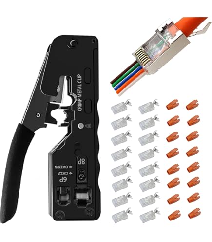 Description du produit À propos de Qwork Économisez davantage, obtenez davantage Pas de publicités, seulement des prix bas et de bons produits. Outil de sertissage RJ45 polyvalent : cet outil de sertissage RJ45 est conçu pour sertir les câbles CAT5, CAT5e, CAT6, CAT6A et CAT7 et garantit la compatibilité avec les normes RJ11/RJ12, offrant diverses solutions pour le réseau Haute compatibilité : prend en charge les câbles CAT5e, CAT6, CAT6A et CAT7 ainsi que les fiches de passage RJ11, RJ12, RJ45 avec bornes à queue d'aronde. Testeur De Cable Rj45 ENSEMBLE UN-Xintylink-Pince à Sertir RJ45 Pour Connecteur Cat8, Cat7, Cat5, Cat6, Outil De Pince A Sertir Rj45 Wurth Service client : achat sans souci avec une assistance satisfaisante pour tout dommage ou problème de qualité. Outil réseau1 - Pince à sertir réseau, outil RJ45 pour pinces... KF CPTEC Jeu de 6 pinces à sertir pour cosses de câble isolées et non Ensemble complet: comprend 50 connecteurs Cat6, 50 protecteurs anti-fixation Cat6, un outil d'inspection réseau et une mini pince à dénuder. Nous simplifions les choses et nous assurons que vous obtenez le meilleur pour moins cher.