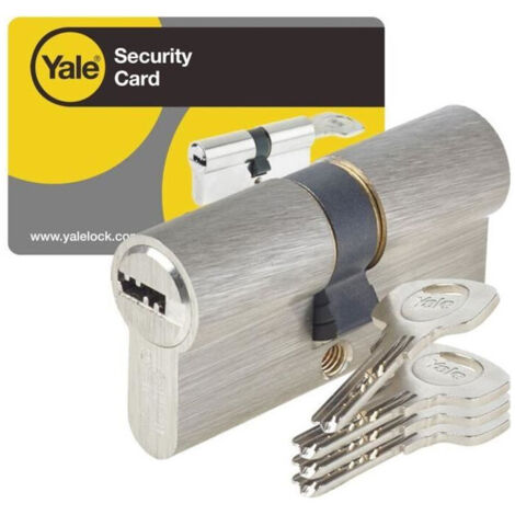Yale - 10-1072-3050-04-2201 - Cylindre profilé européen série 1000 - Haute protection - Cylindre double avec fonction d’urgence 30/50 mm - Nickel satiné - 4 clés Serrure Porte D'entrée Yale Cylindre Européen Série 1000 PLUS 30/40 Mm Nickel | WhichOne Cylindre 25x35 CLÉ RÉVERSIBLE À PLOTS : Ce cylindre utilise une clé réversible à plots dont la surface de morsure se trouve sur la face plate de la lame. 2 poignées sur rosace rosace de fonction cylindre INSPIRE LEE nickel... Cylindre serrure double PZ 8812 40/65mm Fonction d'urgence et de danger Systeme a 6 goupilles (10 000 variations) avec protection avancée au crochetage Protection contre le perçage par goupille en acier trempé Fonction débrayable : permet d'ouvrir une porte avec une clé déja introduite du côté intérieur 4 clés réversibles Carte personnelle pour la reproduction des clés Avis clients · Facilité d'utilisation (4,8/5) · Rapport qualité / prix (4,5/5) · Performance (4,4/5) · Simplicité d'entretien (4,3/5 CARTE DE SÉCURITÉ : Pour la reproduction des clés de nos cylindres brevetés, il vous sera demandé de présenter votre carte de sécurité aux revendeurs agréés. CYLINDRE HAUTE PROTECTION : Ce cylindre breveté en laiton à 6 goupilles offre un niveau élevé de sécurité pour votre porte d'entrée avec protection anti-crochetage.