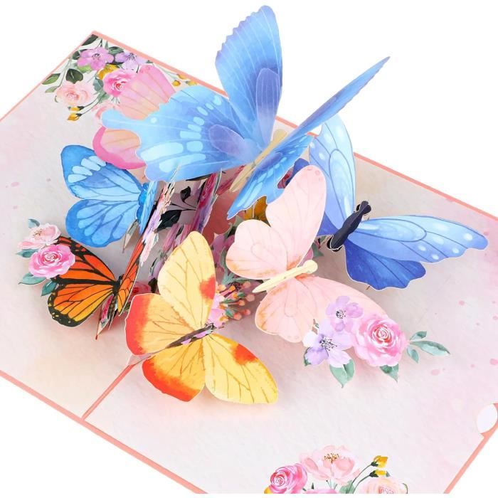 Célébrations polyvalentes : parfaite pour les anniversaires, les anniversaires de mariage ou juste parce que notre carte pop-up en forme de papillon ajoute une touche magique à toutes les occasions. Shop Pop up Cartes D'anniversaire, 3 D Papillon Fleurs Boîte-cadeau avec Enveloppe, Pop Up Carte Fête des Mères, Joyeux Anniversaire Carte de voeux pour... Écrivez votre message : le grand espace vierge à l'intérieur vous permet de personnaliser votre message, ce qui rend la carte papillon 3D pour femme ou un être cher vraiment personnelle. Élégance fabriquée à la main : chaque carte papillon 3D dispose de détails complexes assemblés à la main, ce qui en fait non seulement une carte, mais un souvenir qui chérit chaque moment spécial. Papercrush® Carte Pop-up Papillon - Carte D'anniversaire 3D Notre top 10 des Jofony Carte Pop Up au France - Octobre 2025 Entrez dans un monde de célébration magique avec notre gamme de cartes d'anniversaire pop-up 3D en forme de papillon, où chaque carte se déploie une surprise spectaculaire qui ravira tous ceux qui la reçoivent. Expérience d'ouverture inoubliable : regardez les sourires s'épanouir lorsque les destinataires ouvrent cette carte pop-up papillon, révélant un superbe affichage de papillons 3D au milieu de fleurs délicates.