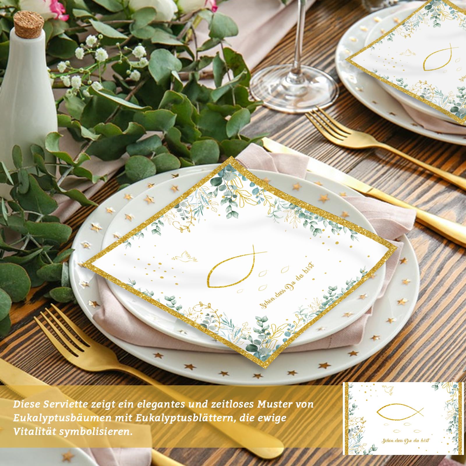 Qualité et fiabilité : nos serviettes en eucalyptus à 3 couches sont fabriquées en cellulose de qualité alimentaire, sûres et inodores. Ces décorations de baptême pour fille peuvent garder votre bureau propre et exempt de déversements de nourriture, de lait, de jus ou de soda. Satisfaction du client : la satisfaction du client est notre motivation. Si vous avez des questions sur les serviettes de communion, nous vous fournirons un remboursement ou un échange. Voir plus de... Retrouvez nos articles religieux pour la décoration de votre table de Communion : assiettes, gobelets, serviettes, menu, porte-nom, marque-place et bien d'autres idées ! Lot de 44 poissons en bois doré, croix, arc-en-ciel, colombe et feuilles en bois. Elles ajoutent une touche charmante à votre événement. Elles sont un excellent compagnon sur votre table à manger. La couronne d'eucalyptus décorée de la phrase chaleureuse « Schön, dass du das bist » dans une écriture élégante, donne à nos serviettes une touche de beauté raffinée qui les distingue des autres. Serviettes de communion décoratives et pratiques : ces belles serviettes en papier avec que vous êtes là et le poisson doré remplacent les serviettes normales. Design unique : élevez vos occasions spéciales avec nos serviettes en papier jetables exceptionnelles. Serviettes de table « Schön dass Du Da Bist » : vous recevrez 40 serviettes de baptême avec l'inscription « Schön Dass Du Da bist » dans les dimensions d'environ 33 x 33 cm, pliées sur environ 16,5 x 16,5 cm (L x l). Serviette Bapteme Fille Lot De 40 Serviettes En Papier - 30 X 30 Cm - 3 Plis - Pour Baptême, Communion, Confirmation Serviette Communion Garcon Trouvez au sein de la collection de serviettes papier, le modèle qui décorera en beauté vos tables et vos buffets et qui pourra se coordonner avec l'ensemble de votre décoration de baptême dans un thème champêtre, enfantin, classique chic ou rétro... Decoration Bapteme Lot De 40 Serviettes En Papier Pour Communion Confirmation Bapt Me 556626