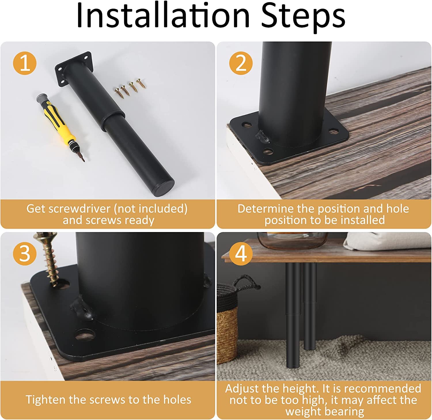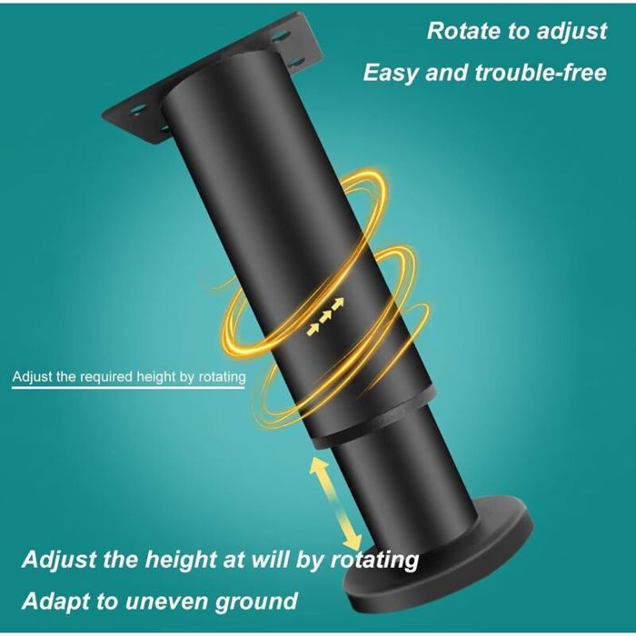 Livraison gratuite 69,99 € TVA incluse Détails de l'offre tekenewbse 4 Pièces 10 cm Pieds de Meuble, avec 18 Pcs Vis Reglable Métal Table Basse Noir Pied, Hauteur Ajustable Pieds pour Meubles Canapé Bureau Cuisine Armoires Réglables Vendu par Caractéristiques : La hauteur de 8 à 12 cm permet à l'aspirateur robot d'accéder facilement au dessous des meubles pour les nettoyer. Le pied simple pour meubles a une capacité de charge allant jusqu'à 400 kg et peut accueillir plus de meubles. 12pcs Pieds de meubles Pieds Réglables Métal 12-18cm Pied Réglable Noir Pied De Meuble Reglable TINGJS Pieds De Meubles Réglables Pieds D'armoire Ronds Métal Pour Canapé éTagèRes Charge 4 Pièces Jusqu'à 800 Kg Hauteur De 8 à 12 Cm Pied Réglable Pour Canapé Facile à installer : dispose de trous de vis à 4 positions pour une fixation plus stable, il suffit de visser quelques vis et vous êtes prêt à partir. Plaque de base et parois latérales plus épaisses pour supporter plus de poids. Excellents détails : la partie inférieure des pieds de meubles est fabriquée en ABS de haute qualité et ne rayera pas votre sol. Capacité de charge plus élevée : un seul pied de meuble réglable a une capacité de charge allant jusqu'à 200 kg, ce qui est supérieur aux autres produits ayant une capacité de charge de seulement 50-100 kg. Remarque : nous recommandons une hauteur de réglage inférieure à 40 mm, sinon il peut y avoir des vacillements. Lot de 4 pieds de meubles en métal réglables pour chaise et canapé - 12 cm - 65 cm - Pieds d'armoire robustes avec capacité de charge de 650 kg - Pieds de... La conception unique réglable en hauteur vous permet de choisir votre propre hauteur, ce qui est très pratique.