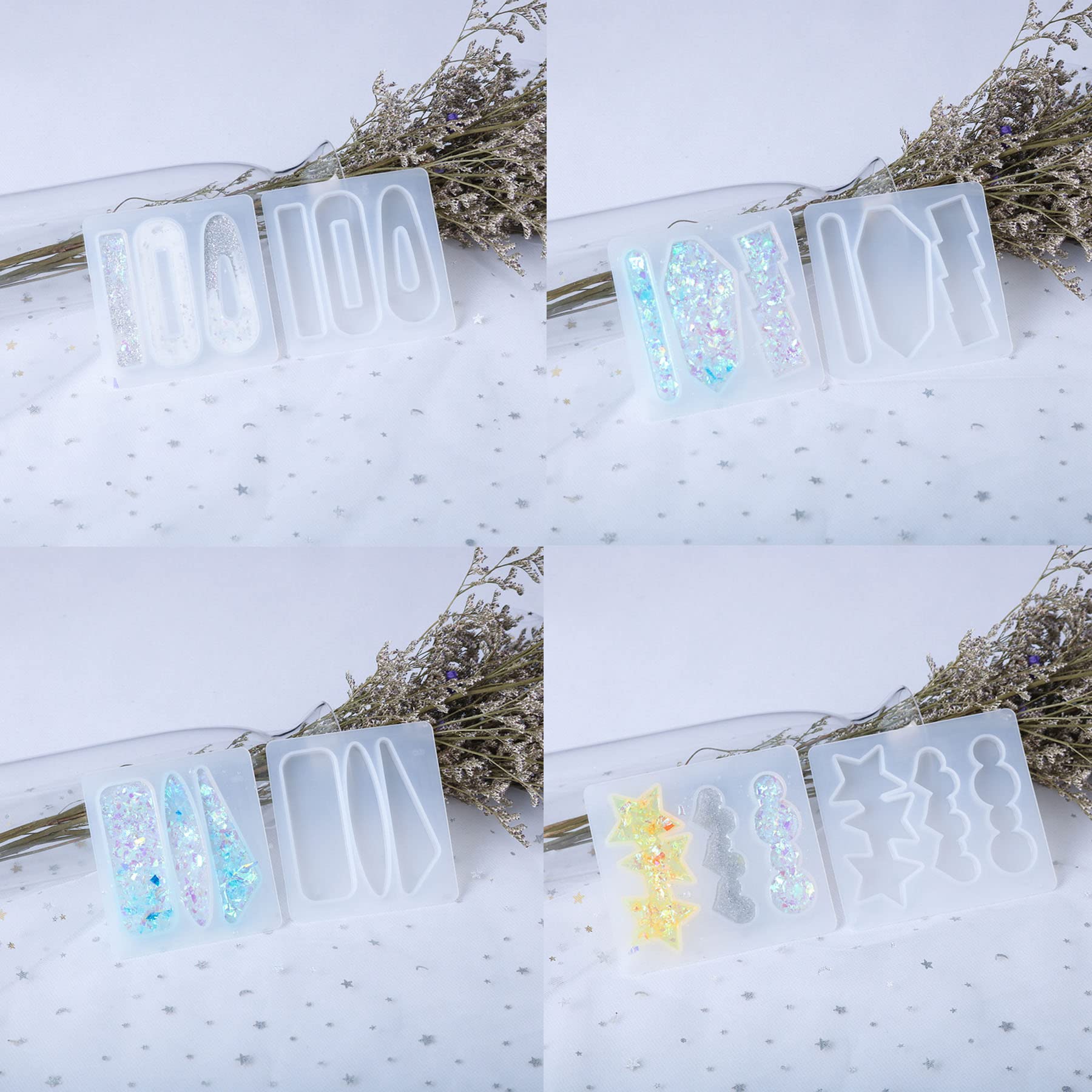 【Facile à démouler】 : le moule en résine de silicone époxy est lisse et brillant à l'intérieur, il suffit d'appuyer sur le fond du moule et l'article en résine sortira facilement. 【LARGEMENT UTILISÉ】: La barrette en résine moulée peut être utilisée pour le bricolage de divers objets d'artisanat et bijoux, tels que des porte-clés, des boucles d'oreilles, des colliers, des pendentifs, des bracelets, etc. 【Moule DIY】 Vous pouvez également mettre des fleurs séchées, de la poudre de perle, de la poudre de mica, de la poudre lumineuse, de la poudre scintillante et des paillettes dans le moule en résine pour créer un moule coloré. Pack outil a main,Créatif Épingle À Cheveux Moules En Résine Dessin... Moule en épingle à cheveux, moule en épingle à cheveux fille, matériau... Kit Resine Cayway 29 PCS Moules En Résine Pour Pinces à Cheveux Set, 4 PCS Silicone Moules Bijoux Résine Kit Resine Enfant Kit de fabrication de barrette à cheveux, 3 moules en résine de silicone, 9 bijoux en métal antidérapant, pince à cheveux crocodile pour loisirs créatifs, moule époxy