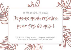Anniversaire 60 Ans Carte D' Pour Femme Cartes Anniversaire Amusantes Carte Anniversaire Pour 60 Ans Améliorez vos vœux avec notre carte haut de gamme. Profitez d'une expérience d'écriture impeccable. 17 coupes de cheveux avec une frange pour les femmes de 60 ans... Carte d'anniversaire 60 hommes et femmes Grande taille 63 x 40 cm Carte... Adoptez la durabilité avec nos cartes éco-responsables. Invitation Anniversaire 60 Ans Bleu Bougie gratuit à imprimer Soutenez l'artisanat local avec nos cartes de vœux. Plongez vos expressions dans des teintes vibrantes. Nos cartes sont conçues pour éviter les bavures, offrant une surface propre et impeccable pour vos messages sincères. Une belle carte à planter pour souhaiter un joyeux anniversaire à un sexagénaire; une carte originale et écologique. Conçue pour être sophistiquée, chaque carte reflète un engagement envers la qualité, assurant que vos messages sont livrés avec style et finesse.