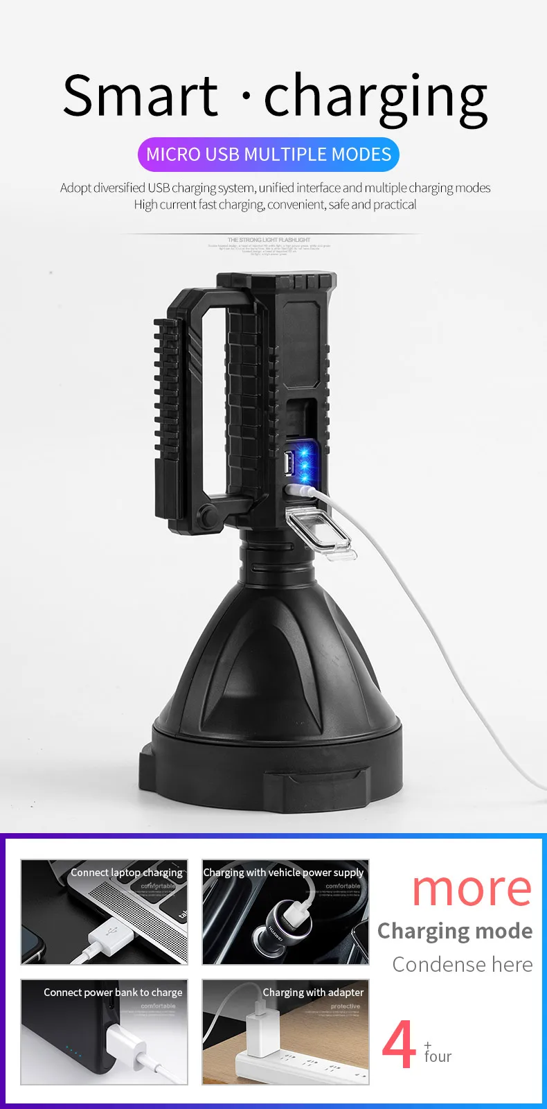 Trépied rotatif et amovible : la grande lampe de poche est livrée avec un trépied réglable, vous pouvez tenir le spot ou le tenir debout avec le trépied. C'est un spot d'extérieur idéal pour la randonnée, le camping, la réparation, la chasse et la pêche. Polyvalence : c'est le projecteur idéal pour les excursions, le camping, la pêche et en général pour l'utilisation en extérieur. Mais c'est aussi un parfait éclairage de secours en cas de problème sur la route, de réparation de voiture, pour vos barbecues entre amis et comme lampe de travail 【Lampes de poche puissantes et service clientèle】Ce que vous obtiendrez : 1 spot haute puissance avec batterie intégrée, 1 câble de charge USB, 1 trépied. Mais ne le mettez pas directement dans l'eau. Le trépied convient pour vos travaux de réparation, la pêche, la randonnée et le camping. 【Projecteur portable rechargeable de 2 000 000 L à haute luminosité】Le spot LED super lumineux de 2 000 000 L utilise des puces LED agrégées améliorées. Si vous avez des questions ou des problèmes sur le spot LED rechargeable, n'hésitez pas à nous contacter. Vous pouvez voir la puissance restante au voyant d'alimentation. Lampe frontale haute puissance rechargeable par USB, lampe de travail... Notre équipe de service est heureuse de répondre et de résoudre. Lampe Longue Portée Puissante Projecteur Portable 2 000 Lumens - Lampe De Poche étanche - Lampe De Poche LED Pour Bateau - Rechargeable - Rouge - Pour La Chasse, La Recherche Lampe Puissante Rechargeable Mais également utilisé comme batterie externe d'urgence pour smartphone. Vous pouvez changer le mode d'éclairage approprié selon vos besoins. La poignée antidérapante est idéale pour la recherche, l'exploration, l'escalade, etc. Il peut être chargé par une banque d'alimentation, une prise USB, etc. Lampe de poche LED rechargeable, projecteur d'extérieur pour chasse, bateau, camping, 100 000 lumens, super lumineux et étanche avec 6 modes, lumière COB et panneaux solaires
