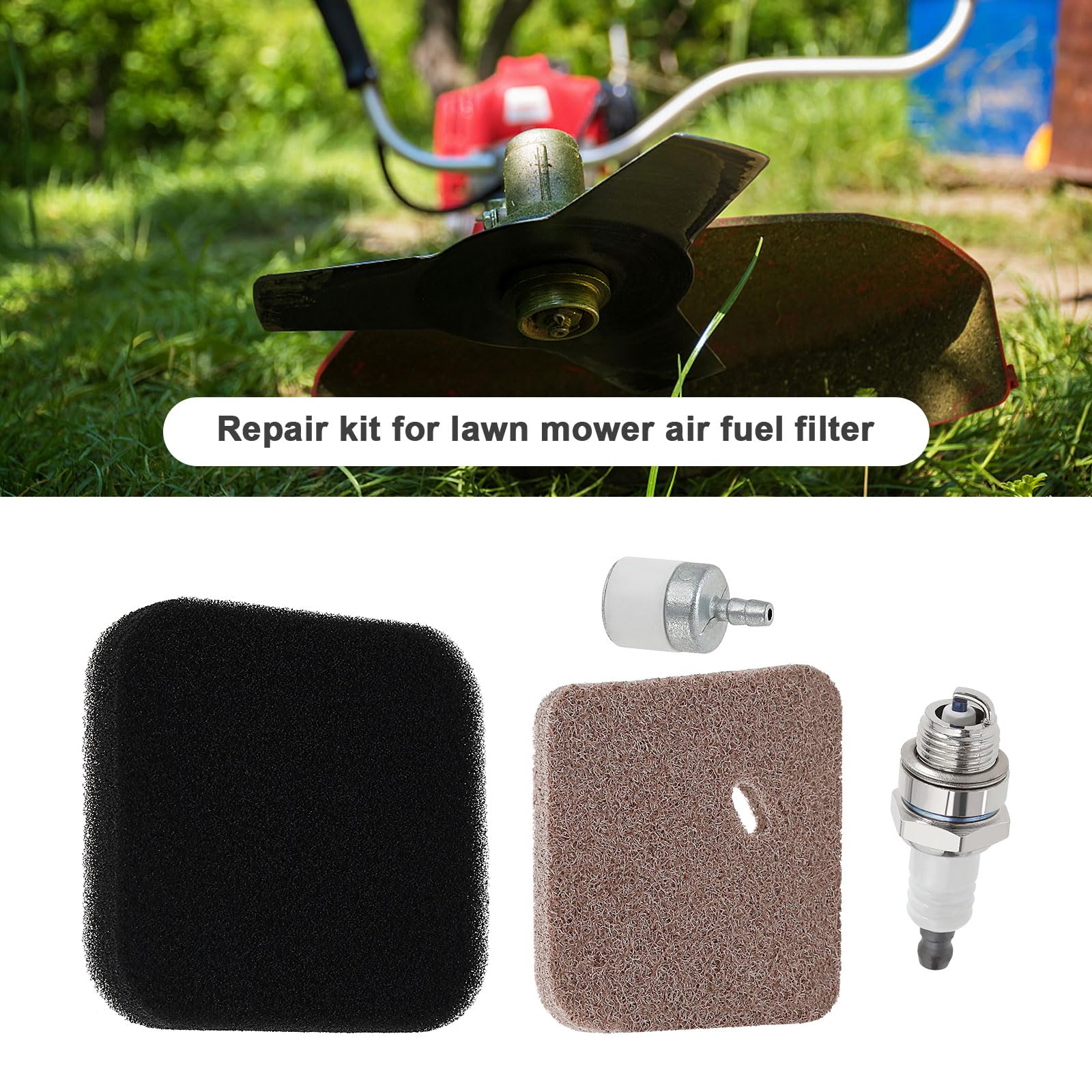 Kit D'Entretien Pour Tondeuse STIHL FS38/FS45/FS55 - Filtre Dans l’entretien des tondeuses à gazon, le filtre à air joue un rôle fondamental en empêchant les débris et la poussière d’entrer dans le moteur. Filtre a air Briggs et Stratton moteur 3,5 & 3,75HP les moteur Classic Sprint & 4,0 HP Quattro, Série 450, 500, 550, H: 30 mm, l: 75 mm, L: 130 mm Combustion améliorée : équipée d'une bougie d'allumage L7T pour une meilleure combustion et un fonctionnement plus fluide. Ce kit inclut : 1 filtre à air, 1 bougie d'allumage, 1 filtre à carburant et 2 poires d'amorçage. Compatible avec les modèles FS38, FS45, FS55, KM55, HL45 et... ECSiNG Lot De 4 Filtres à Air Pour Tondeuse à Gazon, Kit De Item Specifications Type de produit:Kit de réparation de filtre de tondeuse Compatibilité:Compatible avec Stihl HS45 Matériel:Métal, Filtre Coton Package 1x Filtre à air marron 1x Filtre à air noir 1x Filtre à carburant 1x Bougie d’allumage L7T Compatibilité : ce kit de réparation de filtre de tondeuse à gazon est compatible avec les modèles Stihl HS45 pour un entretien efficace.