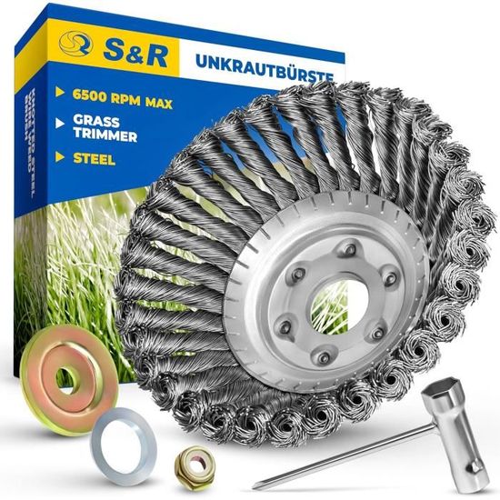 Il suffit de placer notre tête de coupe sur la vis supérieure de votre tondeuse à arbre droit et de la fixer avec des rondelles et des écrous. Débroussailleuse Thermique Professionnelle Brosse à Mauvaises Herbes, Débroussailleuse En Nylon, Brosse à Mauvaises Herbes Pour Débroussailleuse Einhell Batterie Les brosses à herbes sauvages pour débroussailleuses sont composées de fils métalliques noués. Les trous centraux adaptés à la plupart des tondeuses sont de 25,4 mm et 20 mm. Que vous ayez un jardin bien entretenu ou un espace plus sauvage, la brosse désherbage permet de s’attaquer à des mauvaises herbes tenaces de manière ciblée et rapide L'excellent équilibre de rotation réduit la fatigue de l'opérateur et prolonge la durée de vie de l'outil. Utilisation : La tête de coupe en fil métallique peut être utilisée pour tondre les pelouses, notamment pour enlever les mauvaises herbes dans les coins ou entre les briques, pour enlever la mousse des trottoirs et pour enlever les mauvaises herbes du sable et du gravier. Brosse À Mauvaises Herbes en Nylon - Universelle - Jaune - 5Pcs Access... Ils sont le partenaire idéal pour le désherbage du jardin, ce qui augmente considérablement l'efficacité du travail. Le désherbeur s'adapte à la plupart des débroussailleuses, désherbeurs et tondeuses à gazon sur le marché. Nettoyage Joints Pavés Tête Brosse Désherbage DAZZTIME 200mm QUALITÉ ÉLEVÉE : ces fils sont fabriqués en acier de haute qualité et sont tranchants, efficaces et durables pour une utilisation à long terme. Le fil d'acier torsadé a une plus grande surface de contact, coupe de manière plus régulière et désherbe plus soigneusement et plus rapidement, ce qui réduit considérablement le temps de travail ! Nouvelle brosse de désherbage : la débroussailleuse à brosse de désherbage est fabriquée à partir d'un fil d'acier double couche de haute qualité, plus résistant que l'ancien. Peut être utilisé pour enlever la rouille, enlever la mousse, nettoyer les sols et enlever les mauvaises herbes. Convient à différentes scènes comme les jardins, les pelouses, les pavés, les joints de trottoirs, les allées, etc.