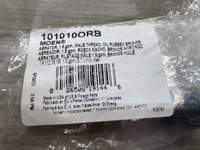 Caractéristiques du produit : kit de rechange pour robinet de cuisine uniquement avec 1 aérateur Marque. Moen · Matériau. Bronze · Type de finition. Huilé · Spécification respectée. WaterSense · Taille du filetage. M24x1 · Débit maximum. 2,2 Gallons par minute Moen 1.5 Gallon Aerator Moen 101010ORB Aérateur De Filetage Mâle 1,5 Gallon Par Moen Aerator Parts Waternymph Aérateur pour Évier Double Fonction Mousseur Robinet avec 2