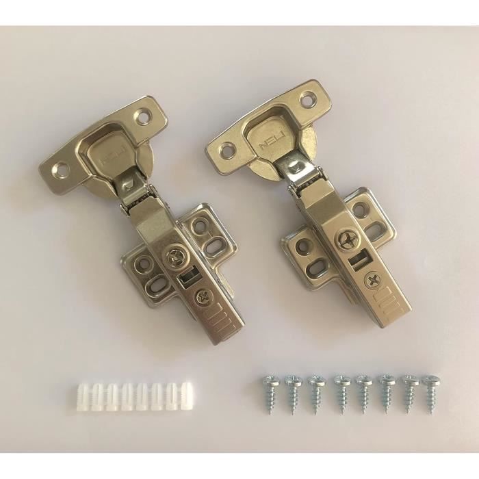 Le réglage permet un alignement facile de la porte. Charnière pour fixation d'angle avec amortissement Soft-Close et plaque de base. Charnière automatique (fixation d'angle kallaite) + 110 ° avec système d'abaissement automatique Charnières amorties 110° pour angle 45° - à visser - entraxe 48 - en... Avec sa finition nickelée, la charnière possède un angle d'ouverture de 55° avec un boîtier de 3,5cm. 6 x SO-TECH® Charnière à Boîtier T45 Charnière d'angle 110° Charnière automatique Fermeture automatique et Amortisseur 1 x gabarit de marquage Charnière Porte Avec Amortisseur Lot De 2 Charnières (nouveau) Avec Fermeture Progressive Compatible Charnière électrique Avec Amortisseur Charnière automatique (fixation d'angle kallaite) 110 ° avec système d'abaissement automatique Réglage 3 dimensions - Réglage latéral et profondeur /- 2 mm chacun - Hauteur réglable /- 2 mm sur les trous longs de la plaque de montage L'amortisseur intégré permet une fermeture silencieuse et lente de la porte du meuble Contenu de la... Contenu de la livraison : 10 rubans de pot avec plaque transversale et vis de fixation Réglage 3 dimensions - Réglage latéral et profondeur +/- 2 mm chacun - Hauteur réglable +/- 2 mm sur les trous longs de la plaque de montage Informations fournisseurs : Nom : Kingfisher International Products B.V. Réglage tridimensionnel - Réglage latéral et profondeur de +/- 2 mm - Réglage de la hauteur +/- 2 mm via les trous pour la plaque de montage.