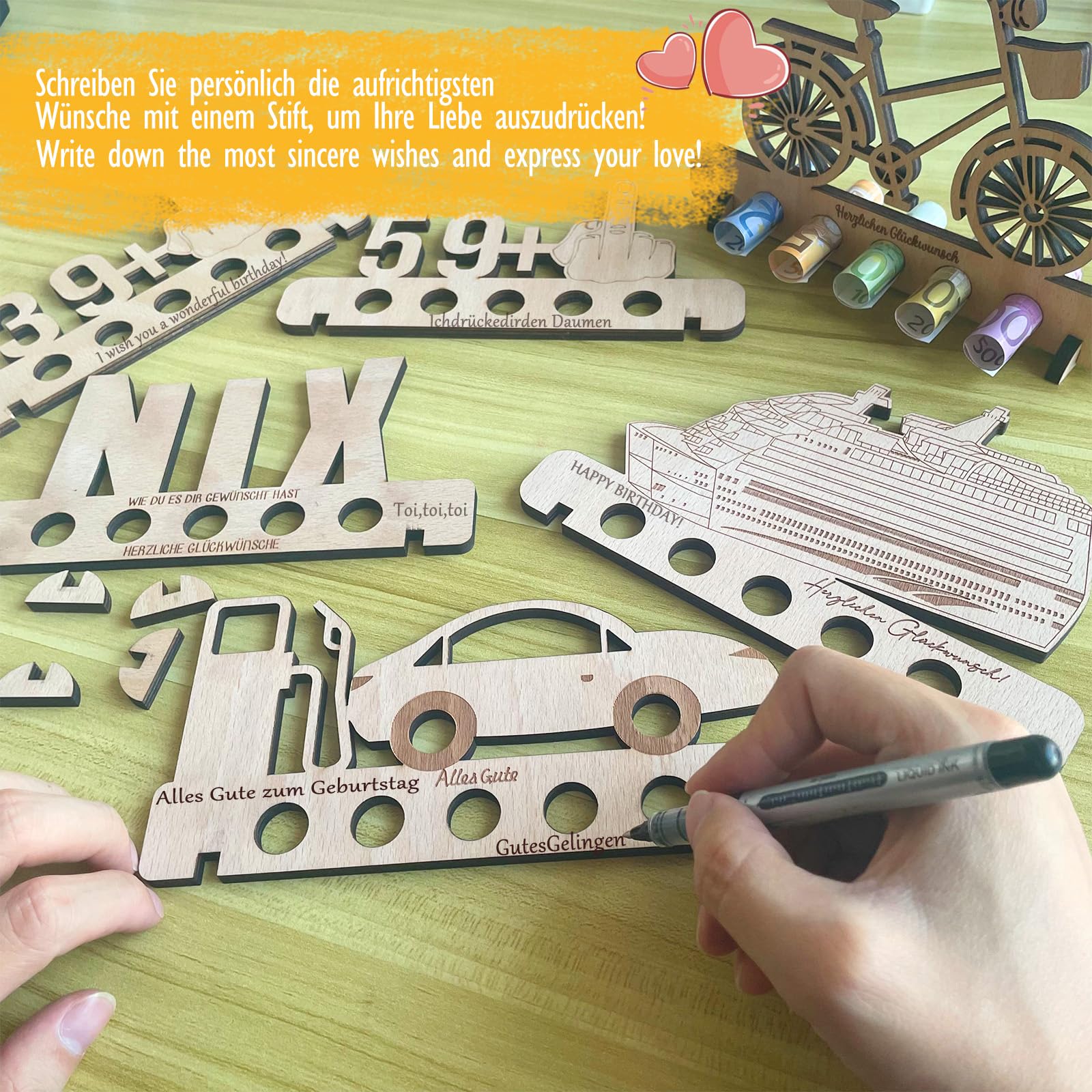 Sugeru® Nix - Décoration D'anniversaire - Cadeau D'argent - Cadeau De Voyage - Cadeaux En Bois - Cadeau D'argent Pour Femmes Et Hommes - Tirelire De