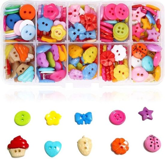[Apparence Mignonne]: La conception des boutons ronds est mignonne et curative, ce qui vous apportera une bonne humeur pour la Pack de 100 boutons de couture en bois à faire soi-même artisanat Taille]: 100 boutons en bois à coudre sont emballés dans une boîte en plastique de 13 x 7 x 2,3 cm. Chaque grille contient 10 boutons identiques de 13... 【Apparence Mignonne】: La conception des boutons ronds est mignonne et curative, ce qui vous apportera une bonne humeur pour la journée. Les couleurs sont divisées en couleurs claires et foncées pour répondre à vos besoins avec divers vêtements. <br/【Apparence Mignonne】: La conception des boutons ronds est mignonne et curative, ce qui vous apportera une bonne humeur pour la Ils peuvent favoriser la communication parent-enfant et stimuler la créativité et la capacité pratique des enfants. 【Motifs Abondants】: Il existe dix styles de boutons différents dans une boîte, y compris des motifs de sourire, des motifs de feuilles, des motifs de fleurs, des formes de pétales et plus encore.