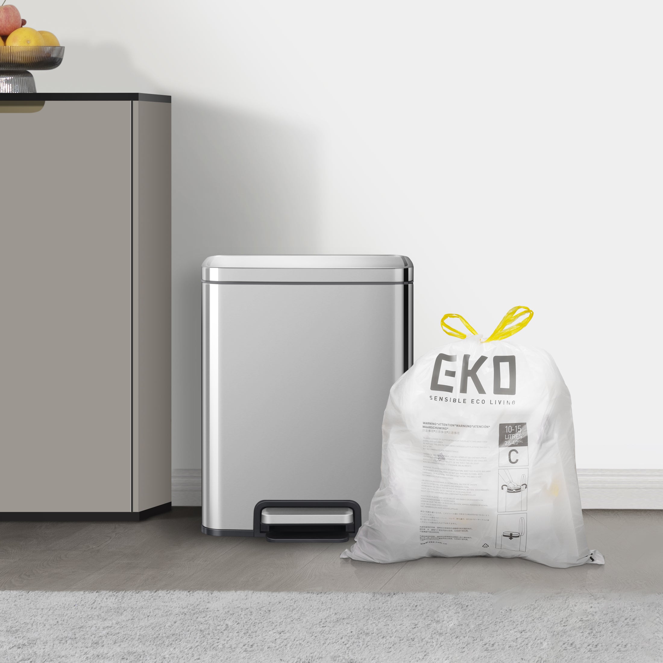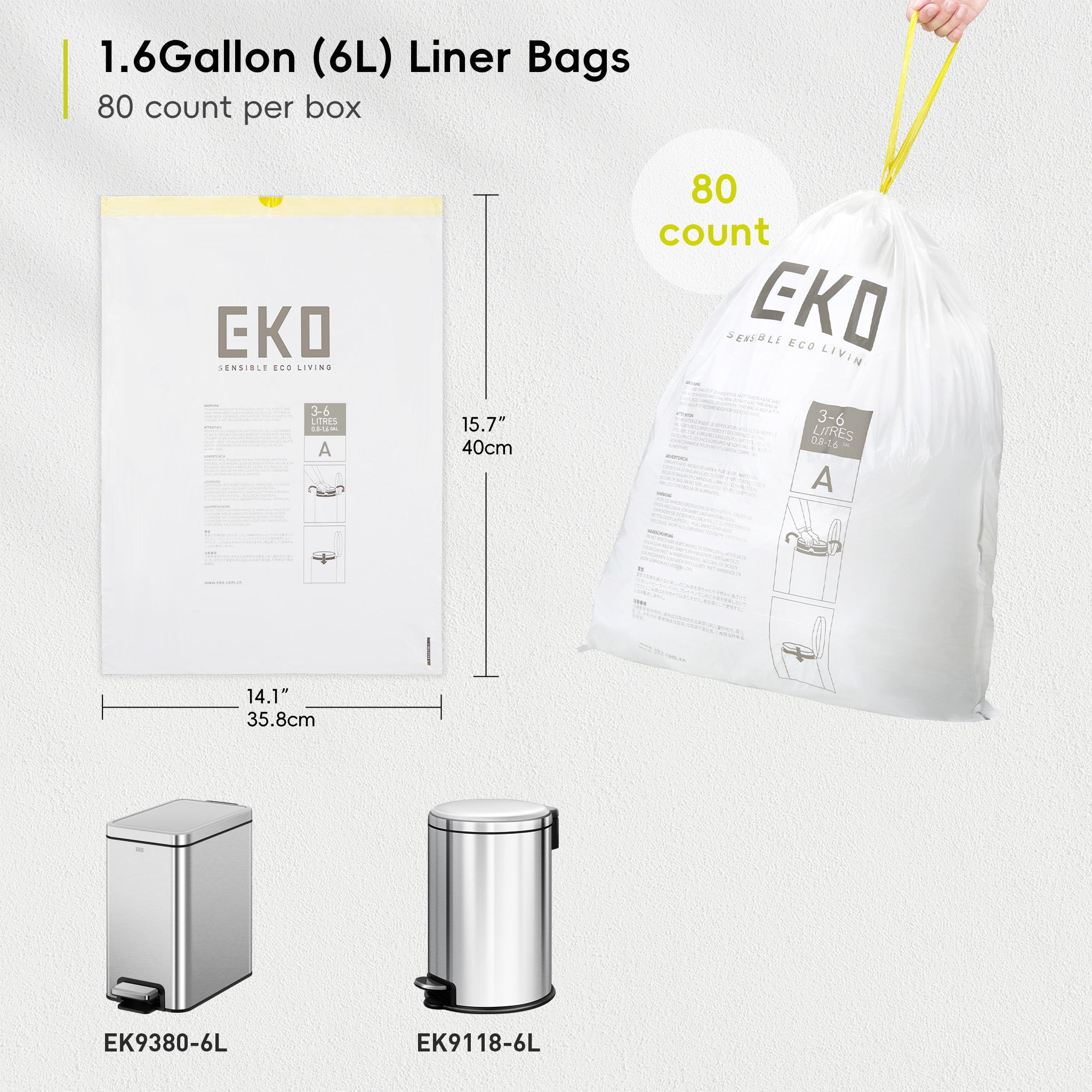 Améliorez votre expérience d'élimination des déchets avec les sacs poubelle EKO 4GAL (10-15 L), alliant résistance, commodité et polyvalence dans chaque paquet. Sacs poubelle extra solides 120 l Sacs poubelle résistants à la Épaisseur extra forte de 1 mm pour une sécurité étanche. Saco De Lixo EKO Easy-Dispense Roll 80 Unidades Extra-Strong 3-6L Résistance inégalée : avec une épaisseur de 1 mm, nos sacs poubelle sont 10 % plus résistants que les grandes marques nationales, assurant une résistance supérieure contre les déchirures. EKO Lot de 100 sacs poubelle extra longs avec cordon de serrage, 30 litres, boîte à accès rapide, ajustement parfait pour les poubelles de recyclage, anti-fuite, blancs, taille F-1 Ajustement polyvalent : conçus pour s'adapter parfaitement aux poubelles EKO - Ces sacs sont également compatibles avec d'autres poubelles allant de 9 à 12 litres. Ce cordon de serrage facilite le changement du sac : soulevez-vous, attachez et c'est prêt. Profitez d'une solution de gestion des déchets étanche et sans effort avec ces sacs poubelle de haute qualité Lot de 80 - 40 sacs sur chacun des deux rouleaux pratiques et faciles à distribuer.