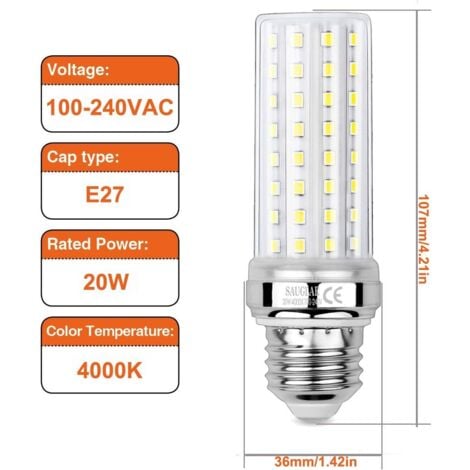 [Économie d'énergie] l'ampoule LED E27 de 20W est une alternative idéale à l'ampoule à incandescence E27 200w. [excellent mode de réglage des couleurs] l'ampoule LED GRV E27 est disponible en trois couleurs de lumière (chaude, neutre et blanche). Légèreté, efficacité élevée et absence de bourdonnement. Ampoules LED en forme de maïs pour candélabres, E27, E14, 220V, 12W, 16W, blanc chaud, 6500K... Durée de vie extrêmement longue. Avec plus d'une décennie d'expérience dévouée, nous nous concentrons sur la fabrication d'éclairages de véhicules et de produits connexes qui allient qualité et praticité. Plus de 30 000 heures de durée de vie théorique. Remarque: la couleur ne changera qu'après avoir appuyé une fois sur l'interrupteur, il n'est pas dimmable et ne convient pas à une utilisation en extérieur. 1. résistance aux tremblements de terre, résistance aux chocs, pas de rayonnement thermique, sécurité et stabilité. La nouvelle technologie LED réduit la consommation d'énergie, une utilisation ultra longue durée [longue durée de vie] les ampoules LED sont en plastique PC et en aluminium pour une meilleure dissipation de chaleur. Aucun autre outil n'est nécessaire. Peut protéger efficacement les yeux tout en offrant un champ de vision lumineux. La technologie de production avancée a permis de réduire la consommation d'énergie de cette ampoule de plus de 90%. Ampoule 12v 21w Ecosmart Ampoule LED B11 E12 60 W équivalente à Candélabre, Intensité Variable, Blanc Doux... | Home Depot Canada Ampoule Navette Led 12v couramment utilisés dans la cuisine, le salon,etc. Si vous avez des questions, cliquez sur contacter le vendeur et nous vous contacterons dans les 24 heures. De plus, les ampoules sont de petite taille et conviennent à la plupart des abat - jour. Ampoules de Maïs LED 20W, Équivalent 150W Ampoule Incandescente, 2300LM, 3000K Blanc Chaud Le culot et la tension doivent être adaptés. Tels que des lustres,des chandeliers ou des lustres ou des lustres, des lampes de table, des lampadaires, des Appliques murales,etc. Rendu des couleurs élevé et performances stables. Notre processus de fabrication, soutenu par des lignes de production automatisées et des procédures de test approfondies, garantit que chaque produit que nous offrons est fiable, de haute qualité et conçu pour durer. Remarque: s'il vous plaît vérifier la taille avant d'acheter.