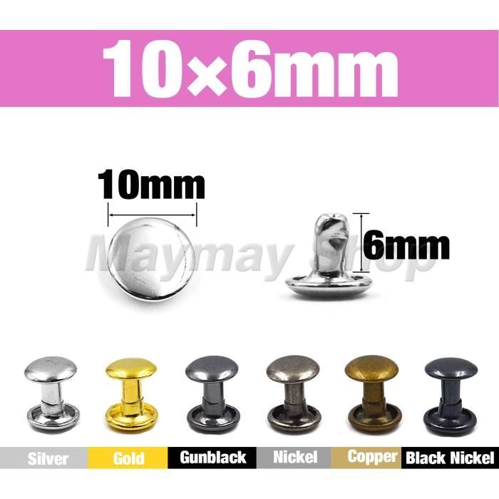 - DEUX PIECES DE FIXATION: Chaque jeu se compose de deux parties: un capuchon (partie supérieure) et un poteau (partie inférieure) - FACILE À ATTACHER: Percez un trou dans le tissu, puis insérez la tige dans le trou d'un côté et enclenchez le capuchon sur l'extrémité de la tige de l'autre côté. LARGE GAMME D'UTILISATION: Ces crampons sont parfaits pour la maroquinerie, la couture, la réparation, le remplacement, les sacs, les casquettes, les porte-monnaie, les accessoires de mode, les décorations, les ceintures, les chaussures, les colliers de chien et bien plus encore. RIVETS TUBULAIRES DOUBLES CAPSULES: La taille des rivets à double caps est de 10 mm x 18 mm (1 cm x 1,8 cm) (L x H) RIVET,10x6mm-Silver--Rivets à Double capuchon en métal, clou rond pour Weddecor 10mm X 18mm Extra Long Double Capuchon Rivets RIVETS TUBULAIRES DOUBLES CAPSULES: La taille des rivets à double caps est de 10 mm x 18 mm (1 cm x 1,8 cm) (L x H) - MATÉRIAU DURABEL MATÉRIAU DURABEL: Ces rivets à double capuchon sont fabriqués en métal solide, durable et résistant.